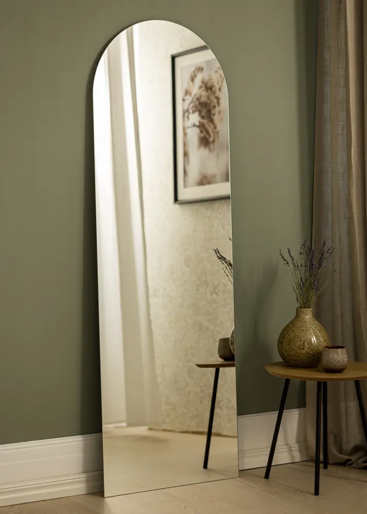 Skapa en känsla av rymd och elegans i ditt hem med vår unika spegel. Med sina generösa mått på 55x155 cm är denna spegel inte bara praktisk, utan också en stilfull inredningsdetalj. Dess avlång och bågformad topp bidrar till en mjuk och modern silhuett som kompletterar alla rumstyper.
