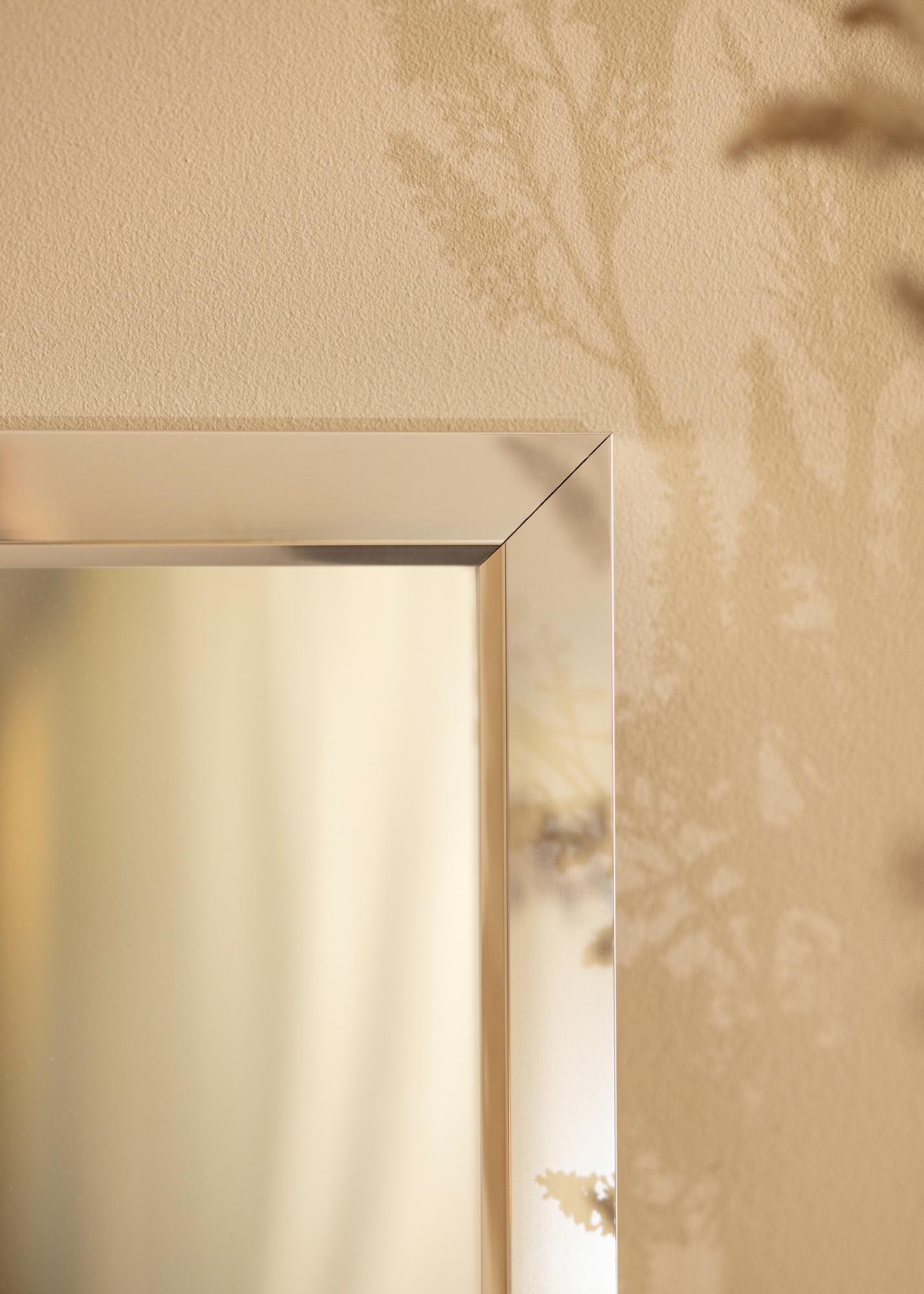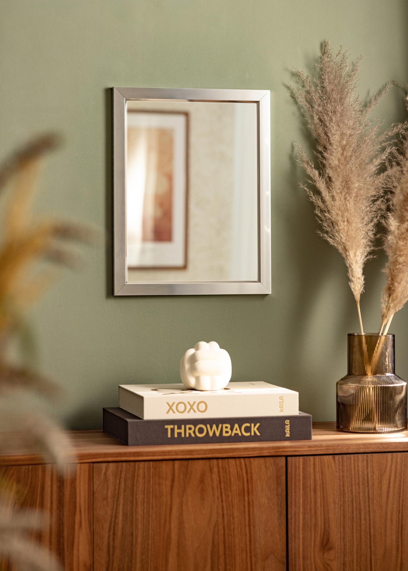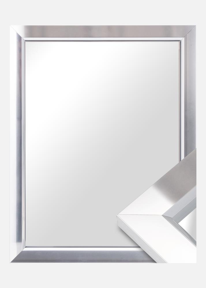 Häftig stilren spegel med en högblank silverram med spegelglaskänsla. Ramen är tillverkad av aluminium i Tyskland och håller en hög kvalité. Spegelramens högglansiga utseende drar ögonen till sig och reflekterar ljuset på ett effektivt sätt, vilket är bra om man vill använda spegeln för att ljusa upp i ett mörkt rum. Spegelns rena formspråk passar bra in i både minimalistiska moderna inredningar och i hem där man blandar både nytt och nött.