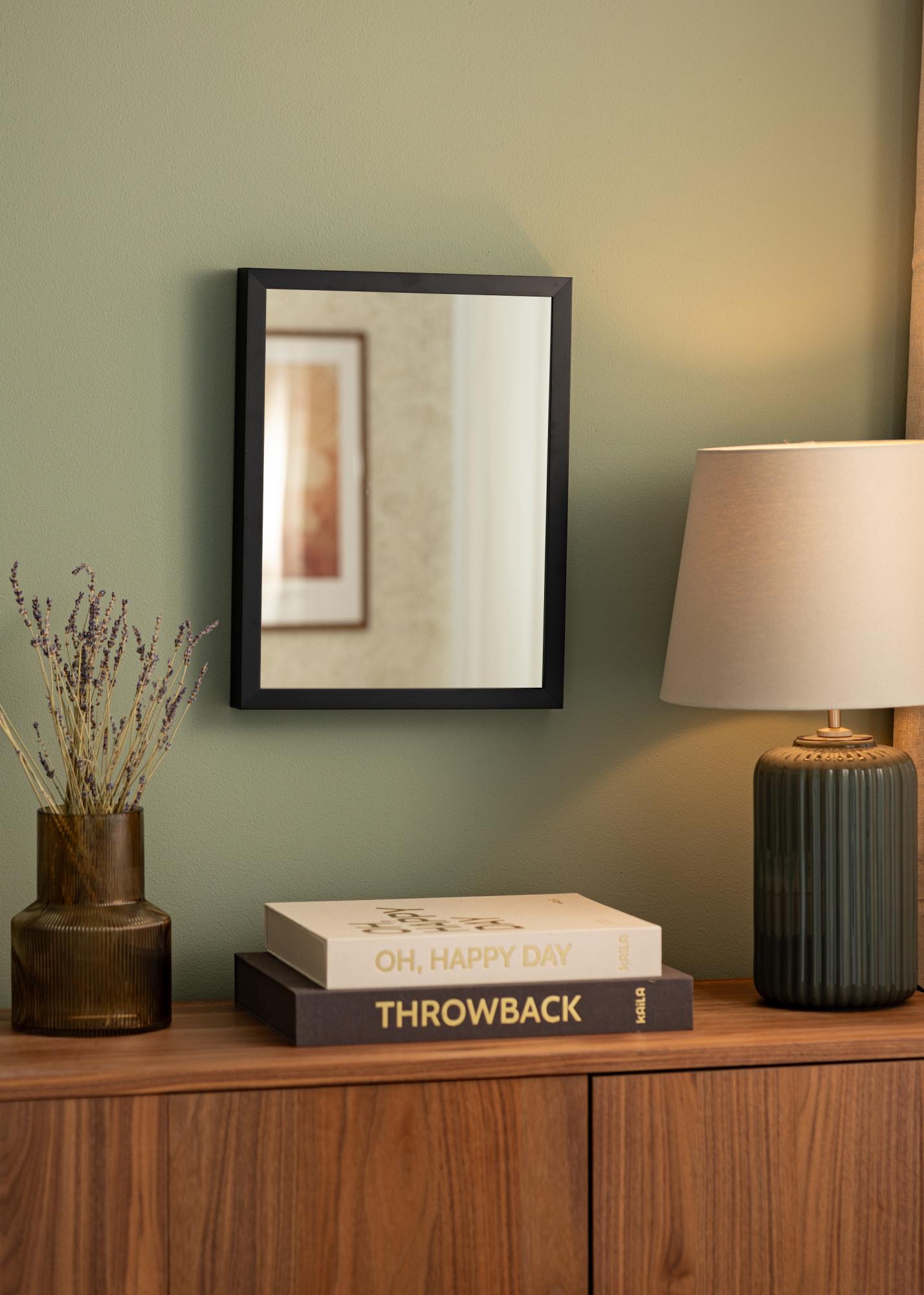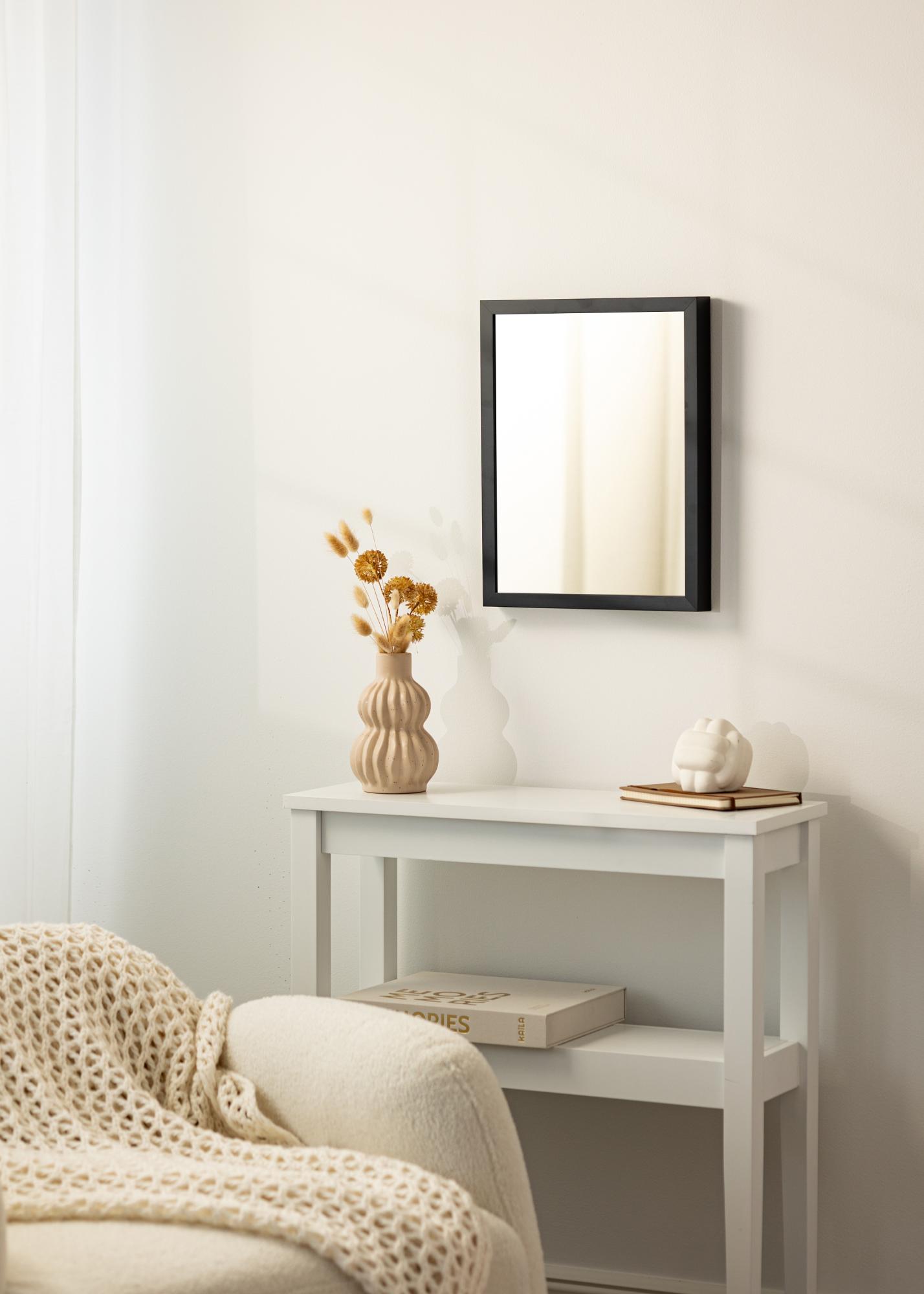 Den svarta färgen på ramen ger spegeln en modern och tidlös look som aldrig går ur stil. Den fungerar lika bra i ett modernt hem som i ett mer traditionellt inrett rum. Dessutom är svart en färg som enkelt kan kombineras med andra färger och material, vilket gör det lätt att integrera spegeln i din befintliga inredning.