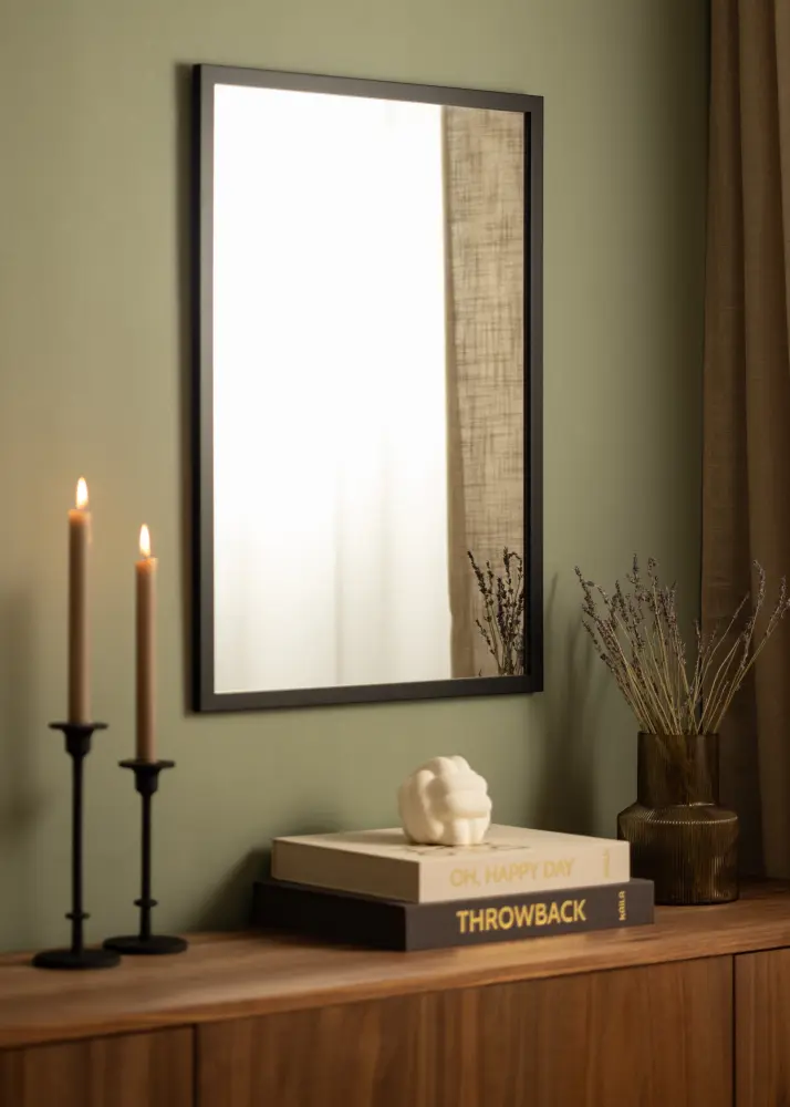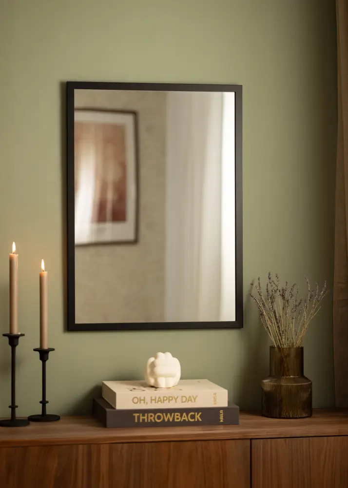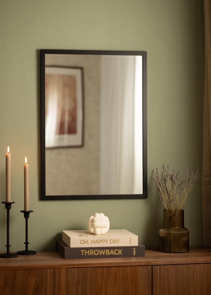 Black Wood är ett utmärkt val för dig som letar efter en stilren väggspegel med enkel svart ram. Spegeln är tillverkad av målat ayosträ och försedd med ofärgat spegelglas. Den 22 mm breda ramen har en traditionell fyrkantig profil som låter spegelytan stå i fokus.