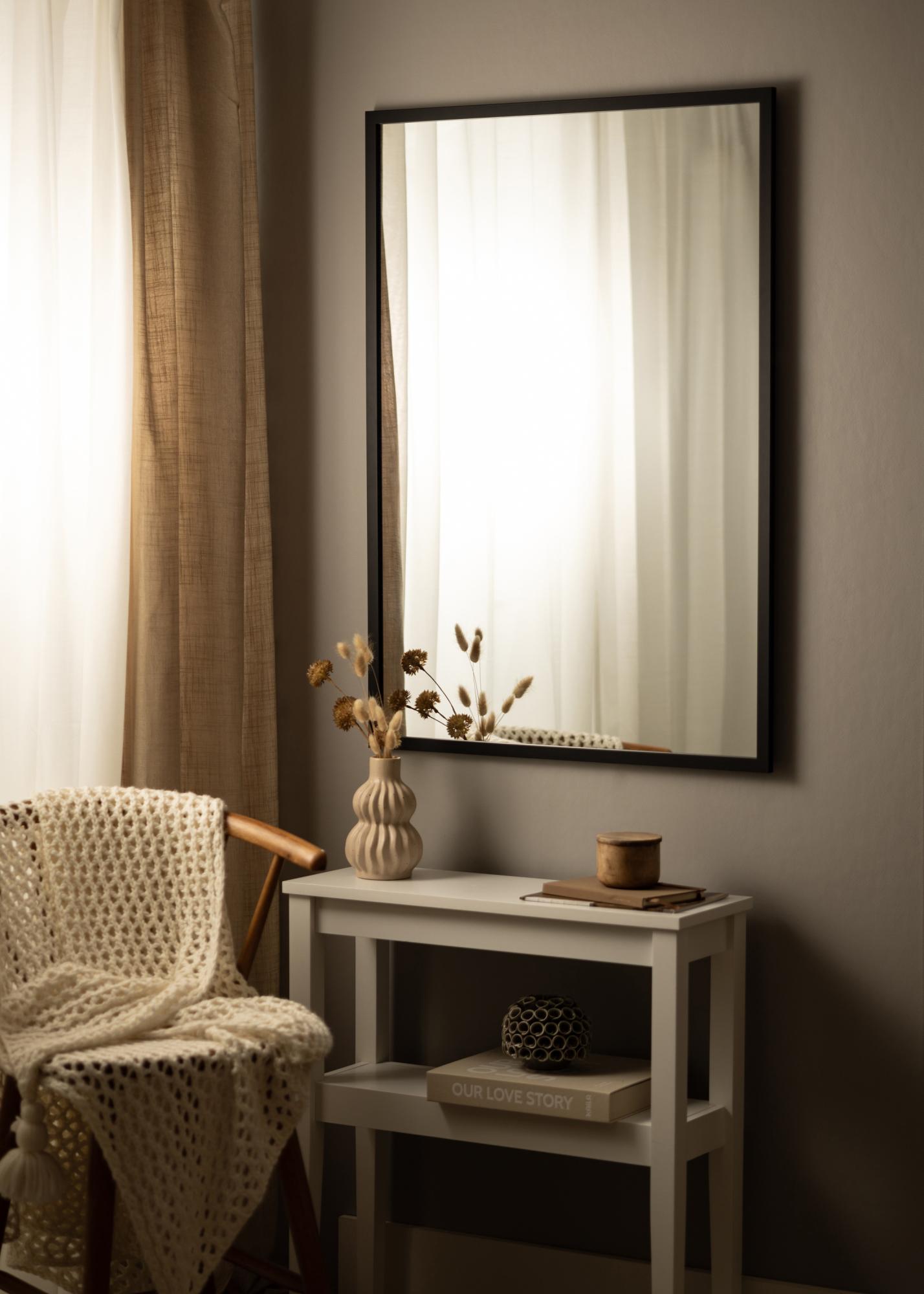 Black Wood är ett utmärkt val för dig som letar efter en stilren väggspegel med enkel svart ram. Spegeln är tillverkad av målat ayosträ och försedd med ofärgat spegelglas. Den 22 mm breda ramen har en traditionell fyrkantig profil som låter spegelytan stå i fokus.