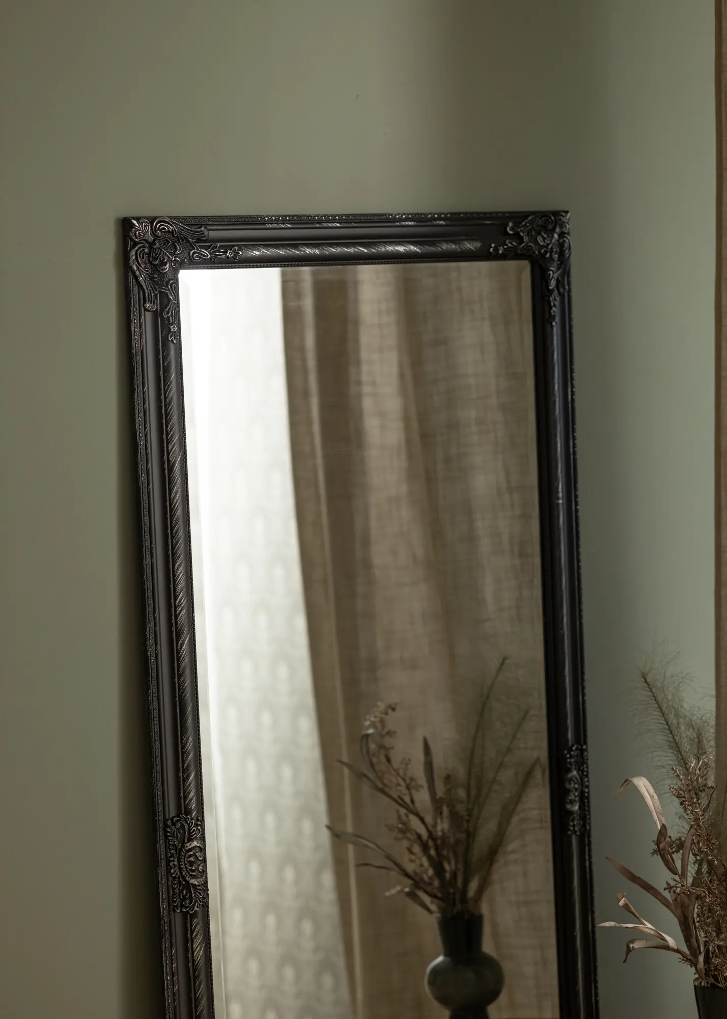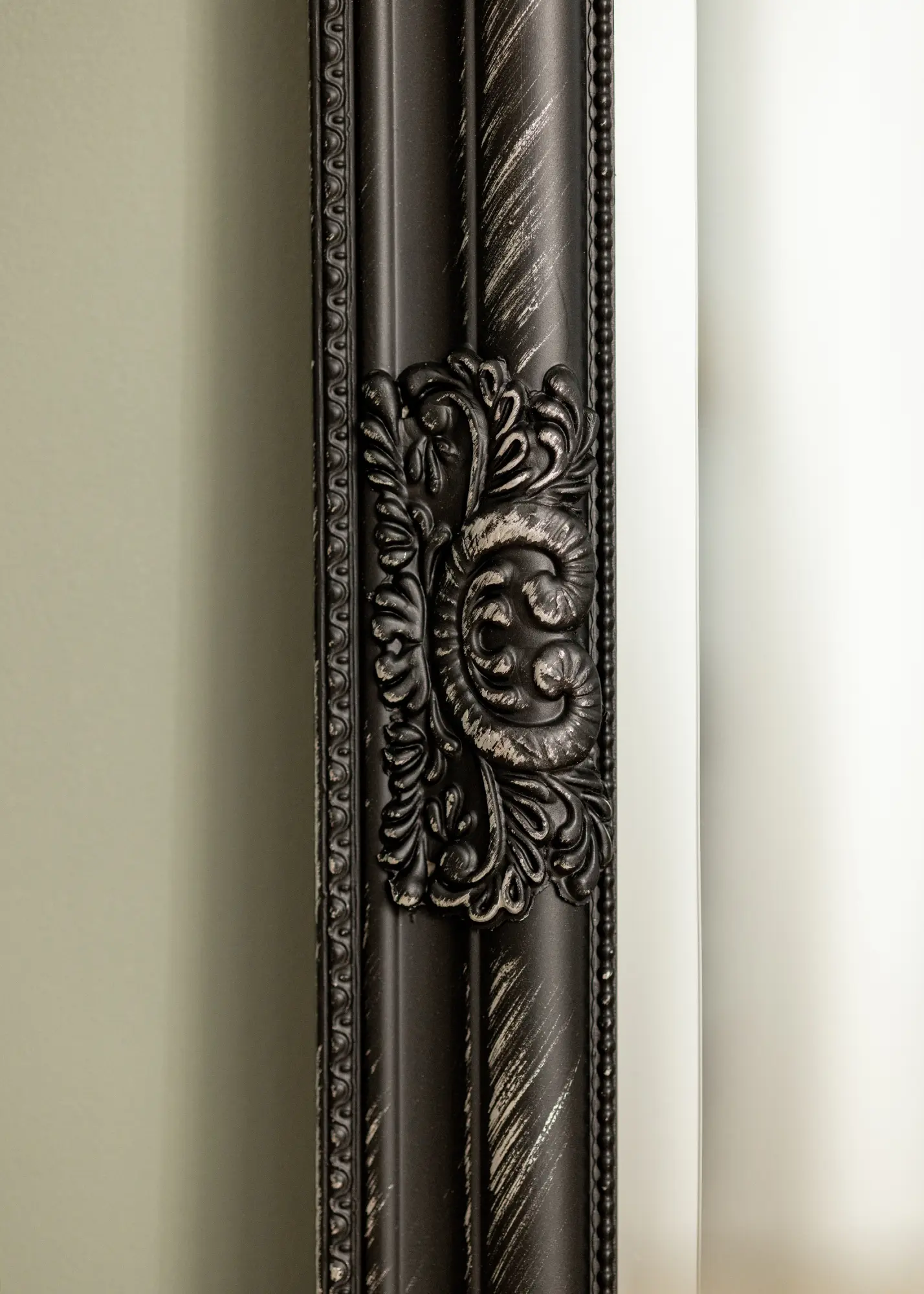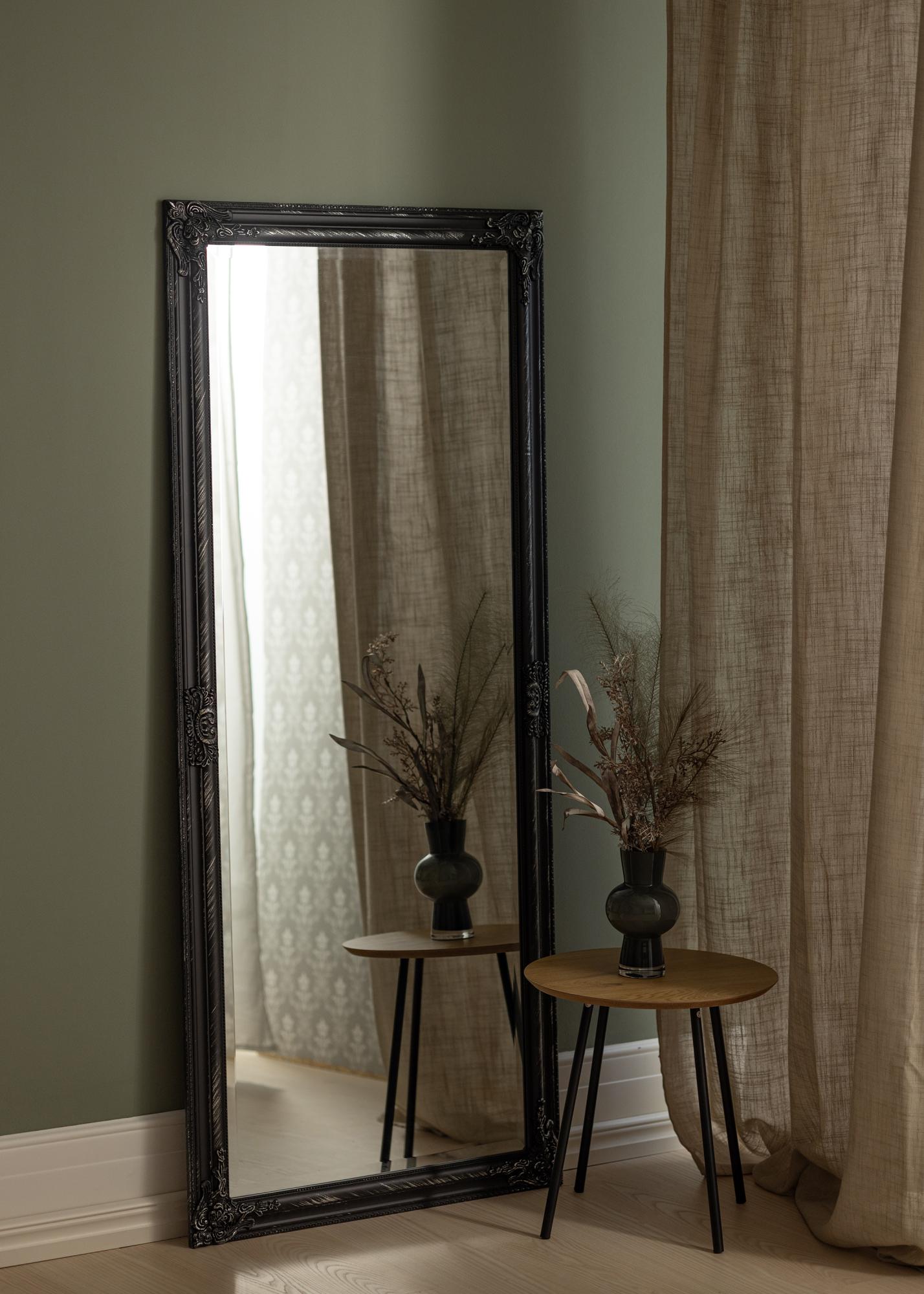 Upptäck den eleganta och sofistikerade designen med vår stående spegel, perfekt dimensionerad till 70x160 cm för att ge en fullständig återspegling. Denna spegel presenterar en stående, rektangulär form som kompletterar både moderna och traditionella inredningsstilar. Den svarta ramen är noggrant utformad med en detaljerad design som tillför en lyxig känsla till vilket rum som helst.