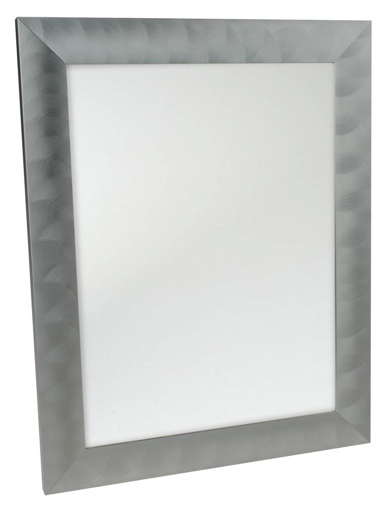 Modern snygg spegel med en stilren ram som har känslan av naturligt stål, men är tillverkad i den lättare metallen aluminium. Spegelns levande stålgråa yta gör sig bra i minimalistiska inredningar, men även i som kontrast i en lantlig eller romatisk stil. Häng spegeln i badrummet för att plocka upp det rostfria i kranar eller har du en walk in closet så ge dig nått vackert att titta in i. Spegeln passar bra att kombinera med andra gråa metallramar.