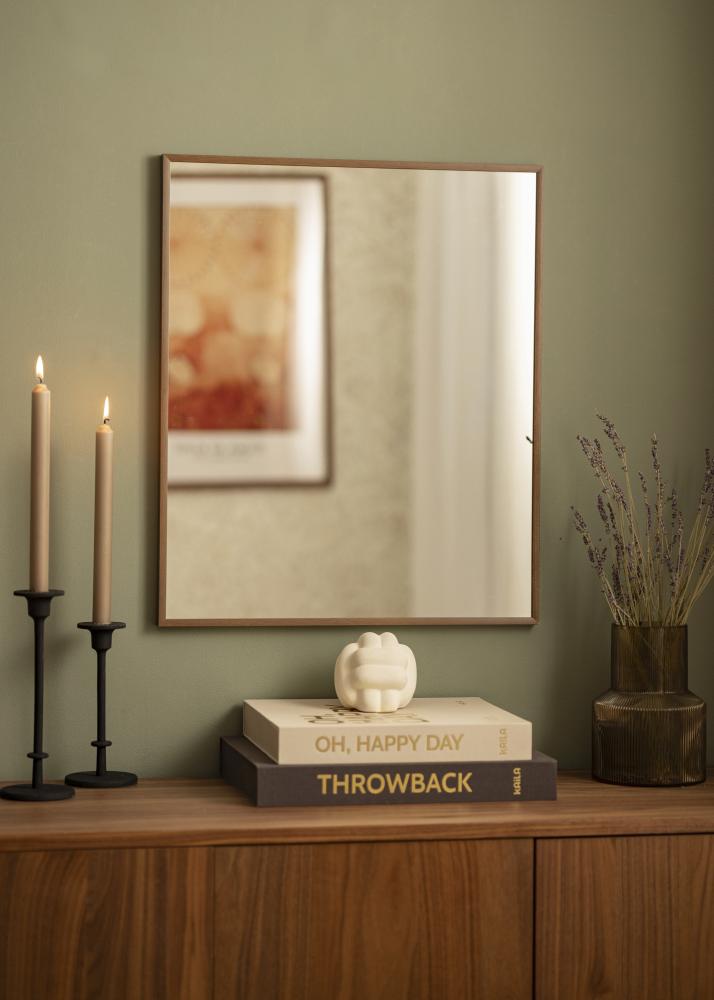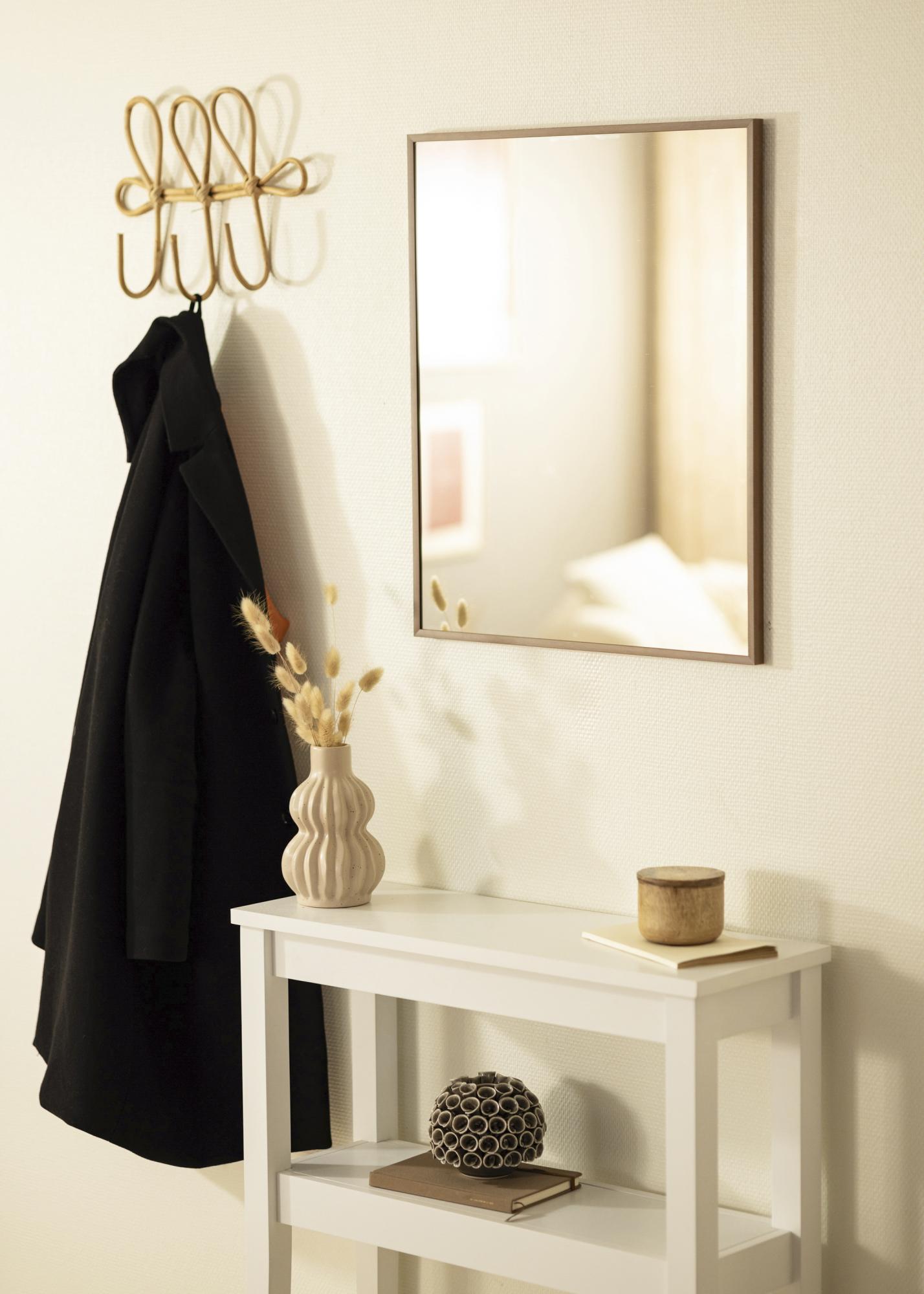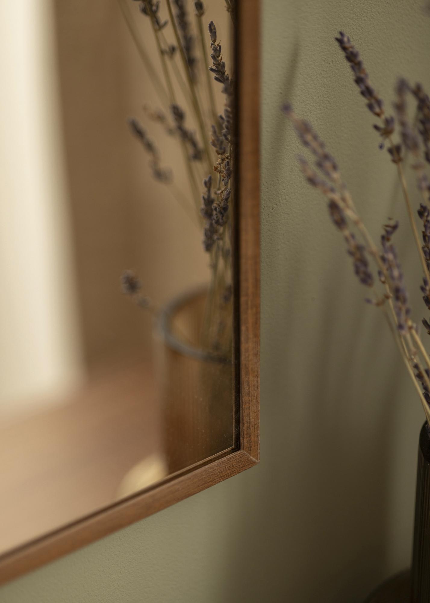 Denna väggspegel är en perfekt kombination av stil och funktion. Ramen är tillverkad av aluminium och knappt 10 mm bred, vilket ger ett elegant, minimalistiskt uttryck. Spegeln tillhör en serie väggspeglar i olika färger och storlekar, varav denna är en träfärgad variant i storlek 51,1x61,1 cm.
