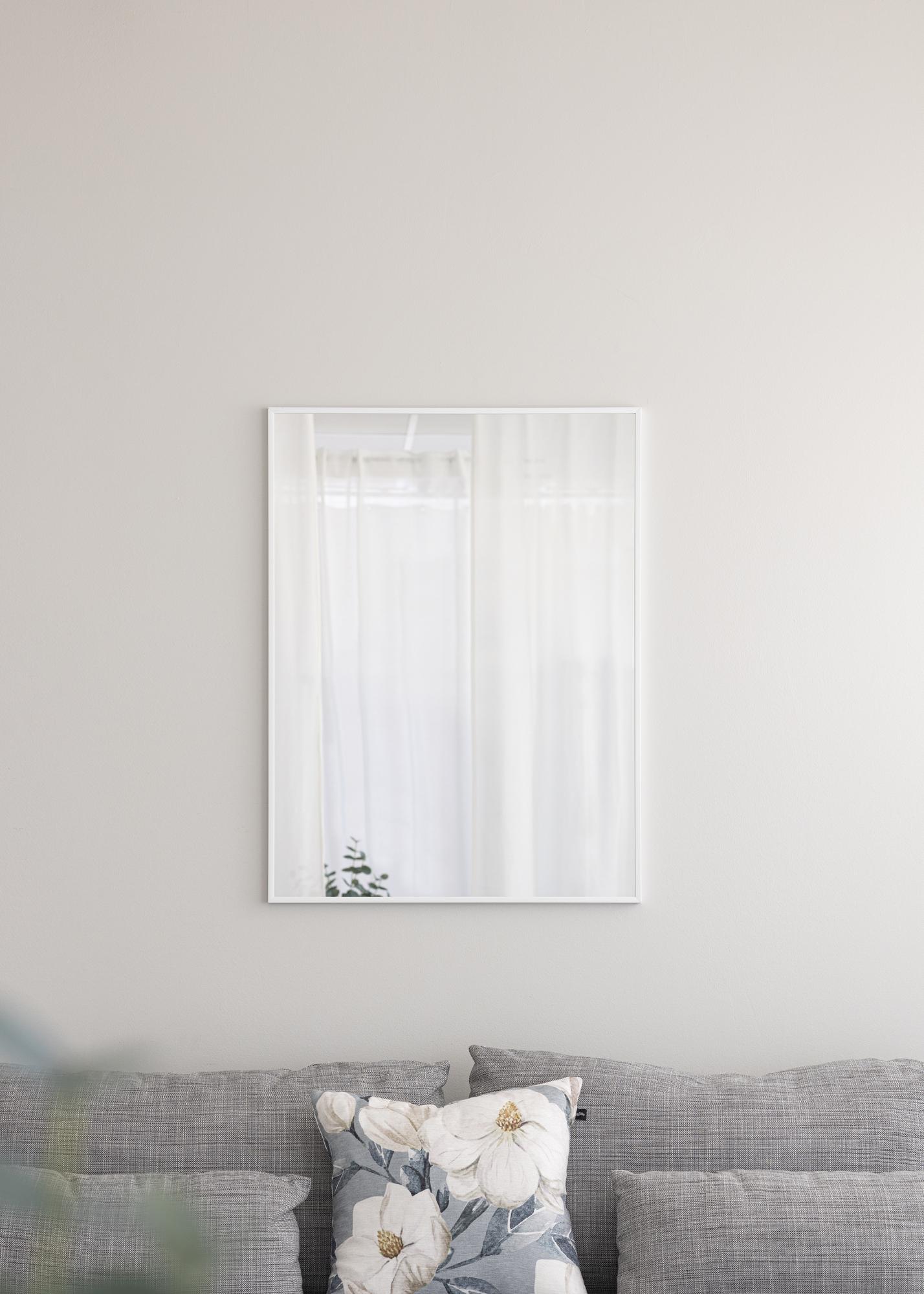 Denna väggspegel är en perfekt kombination av stil och funktion. Ramen är tillverkad av aluminium och knappt 10 mm bred, vilket ger ett elegant, minimalistiskt uttryck. Spegeln tillhör en serie väggspeglar i olika färger och storlekar, varav denna är en vit variant i storlek 61,1x81,1 cm.