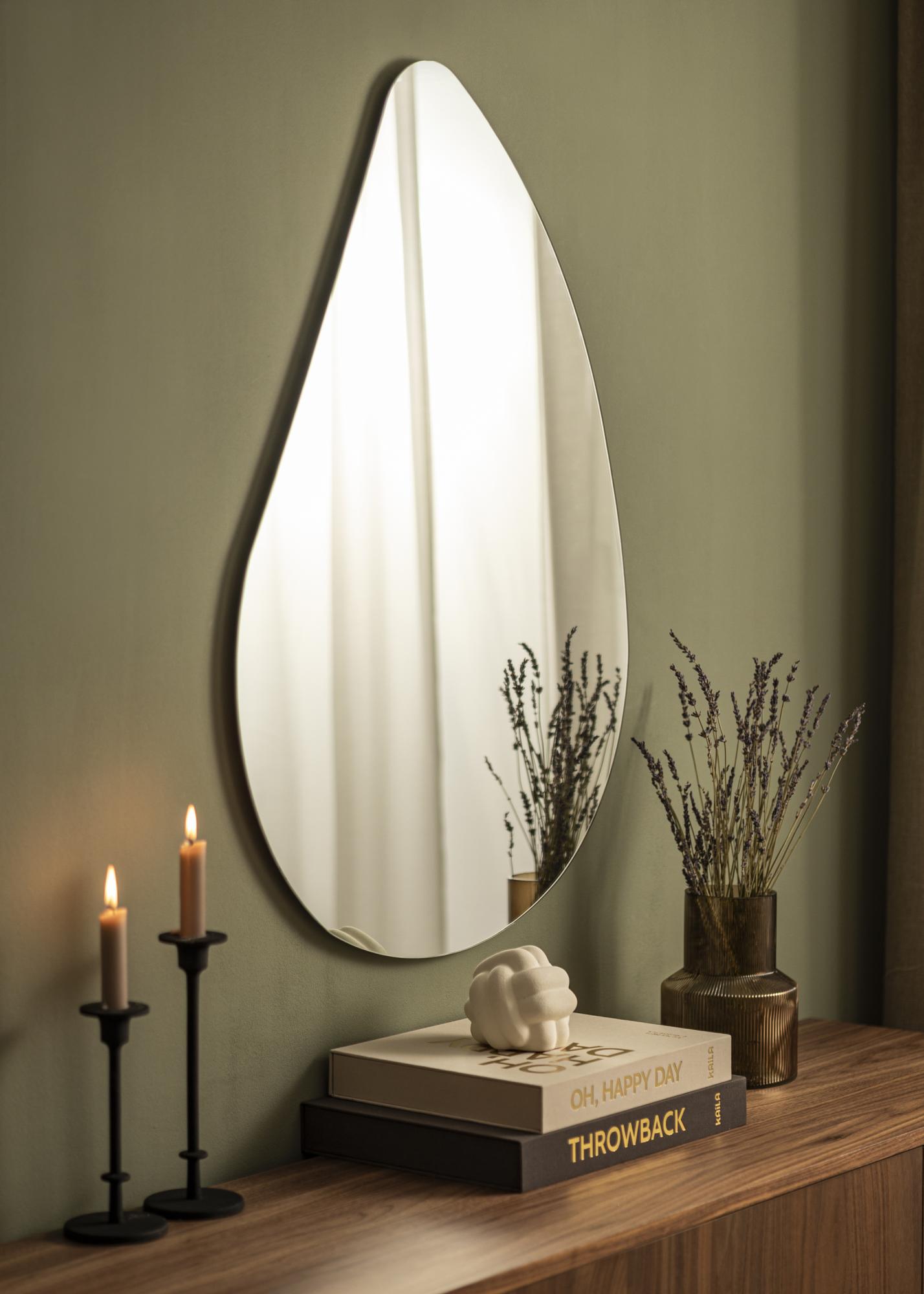 Upptäck den unika charmen med vår spegel som kombinerar funktion och stil på ett imponerande sätt. Med sina mått på 65x90 cm är denna spegel en perfekt accent för både små och stora utrymmen, och dess dynamiska och organiska form tillför en modern touch till din inredning. Spegelns design svänger elegant uppåt och det klara spegelglaset reflekterar ljus på ett sätt som får rummet att kännas större och mer inbjudande.