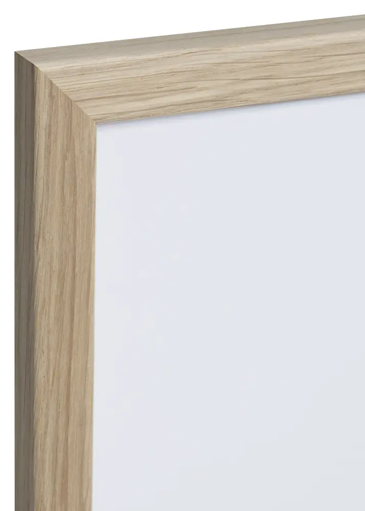 Ibland får vi frågan varför ramen är gjord av ekfaner och inte äkta solid ek om de nu ska vara en kvalitetsram. Anledningen till detta är att det är svårt att få en kontrollerad yta när det rör sig om äkta Ek utan de blir ofta färgskiftningar på olika delar av träet vilket i vissa sammanhang passar bra. Men på en ram riskerar det bara att se ut som att delar av ramen är missfärgad.