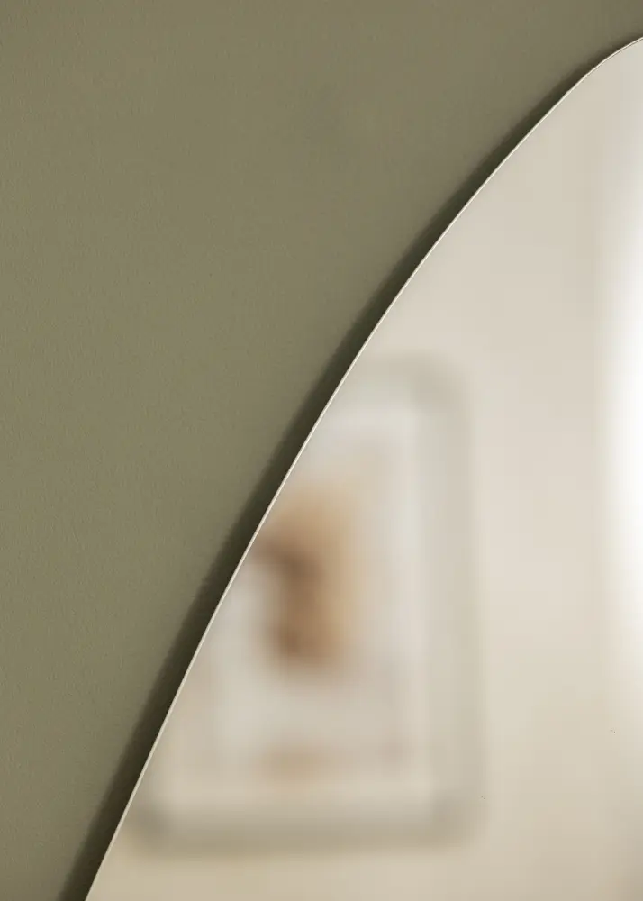 Vår spegel är inte bara en praktisk föremål, utan också en konstnärlig installation som förskönar din miljö. Den organiska formen och den mjukt rundade silhuetten erbjuder en modern twist på den klassiska spegeln.