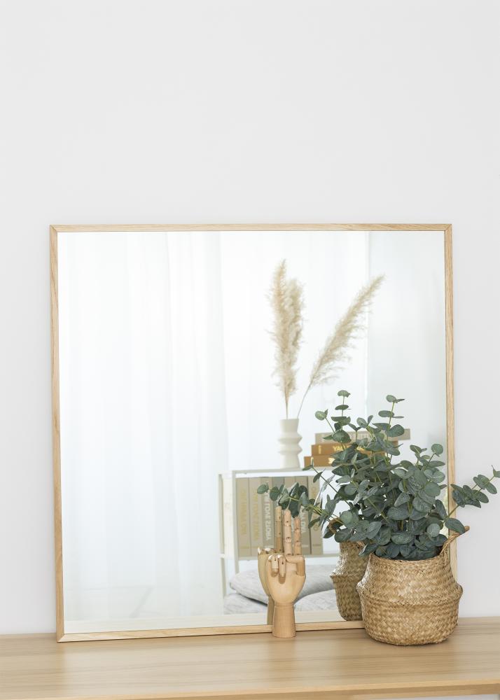 Detta är en väggspegel med tunn träram, som passar utmärkt i både moderna och mer bohemiska hem. Spegeln är en uppvisning av skandinavisk design när den är som bäst, med ofärgat spegelglas och en ljus träram med rak profil, som tillsammans ger en ljus och fräsch framtoning.
