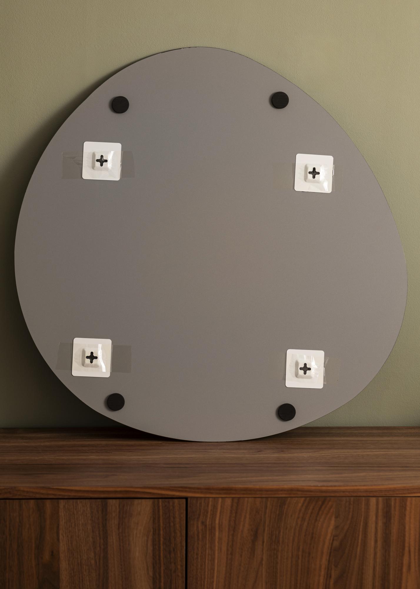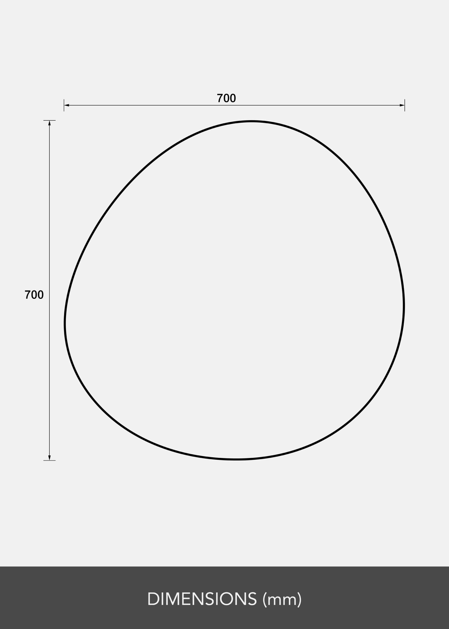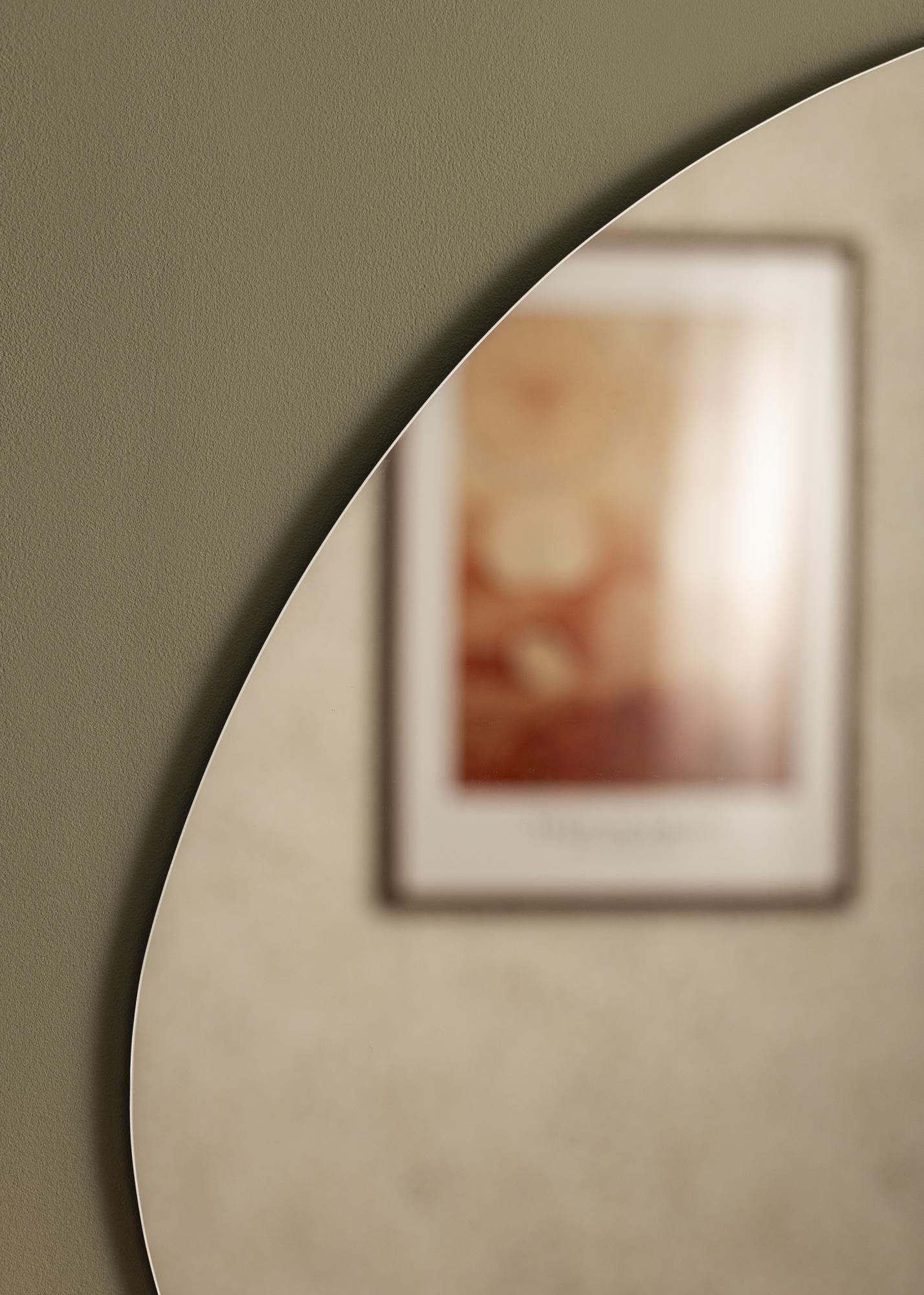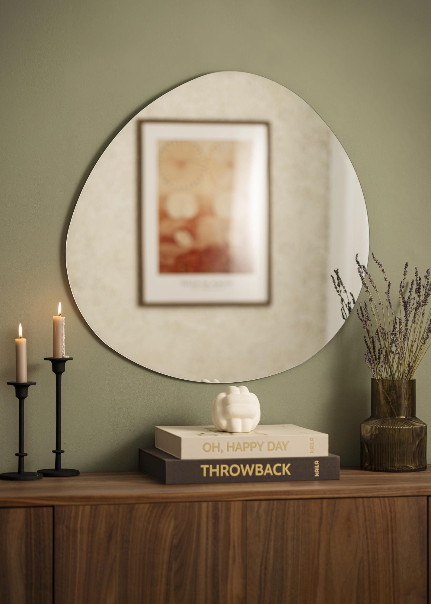 Upptäck den eleganta och mångsidiga spegeln som blir en naturlig blickpunkt i varje rum. Med sina generösa mått på 70x70 cm erbjuder denna spegel en praktisk och dekorativ funktion i ditt hem. Dess avrundade form med en mjuk böjning vid toppen tillför en organisk och avslappnad känsla till rummet, samtidigt som den behåller en modern estetik.