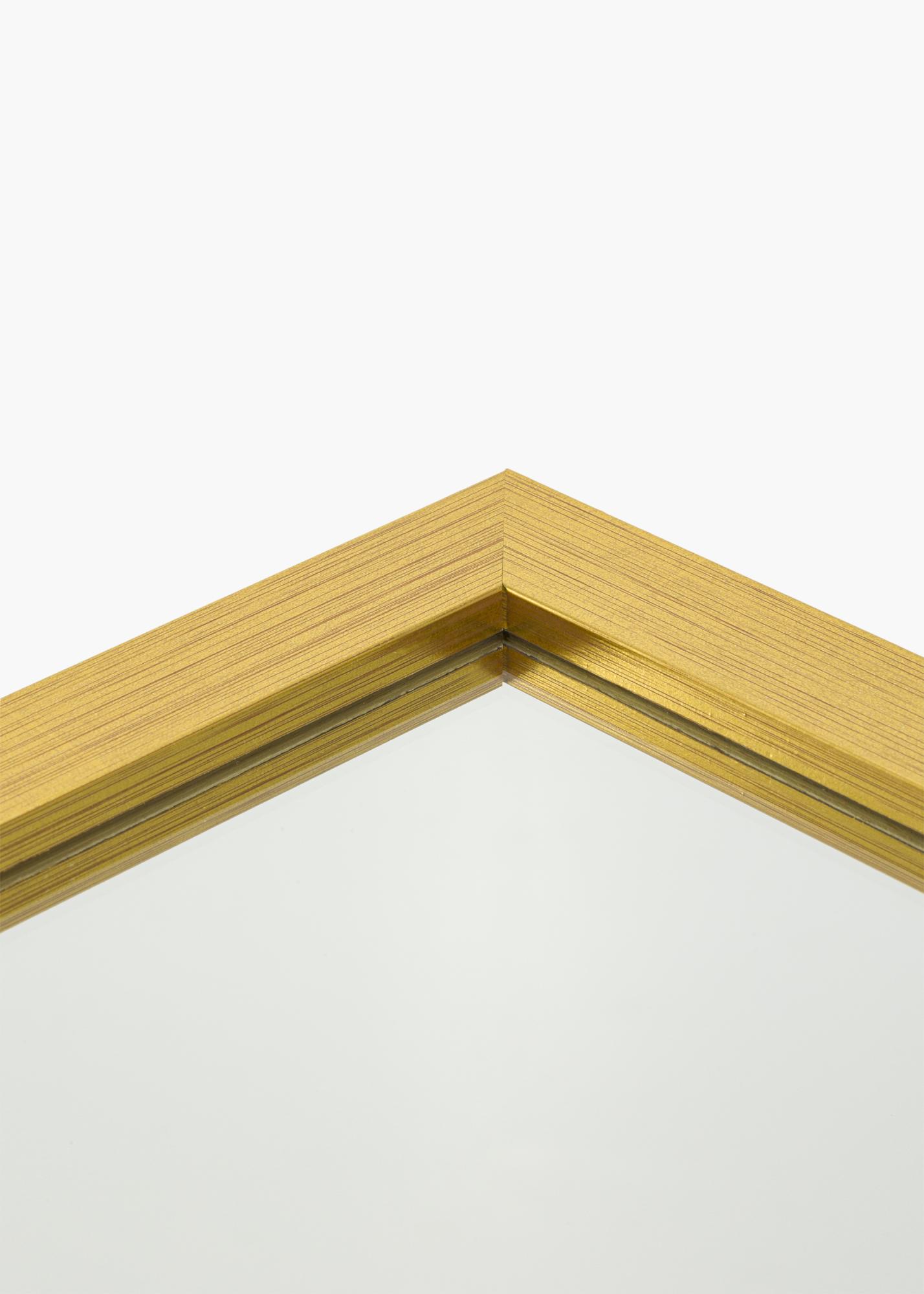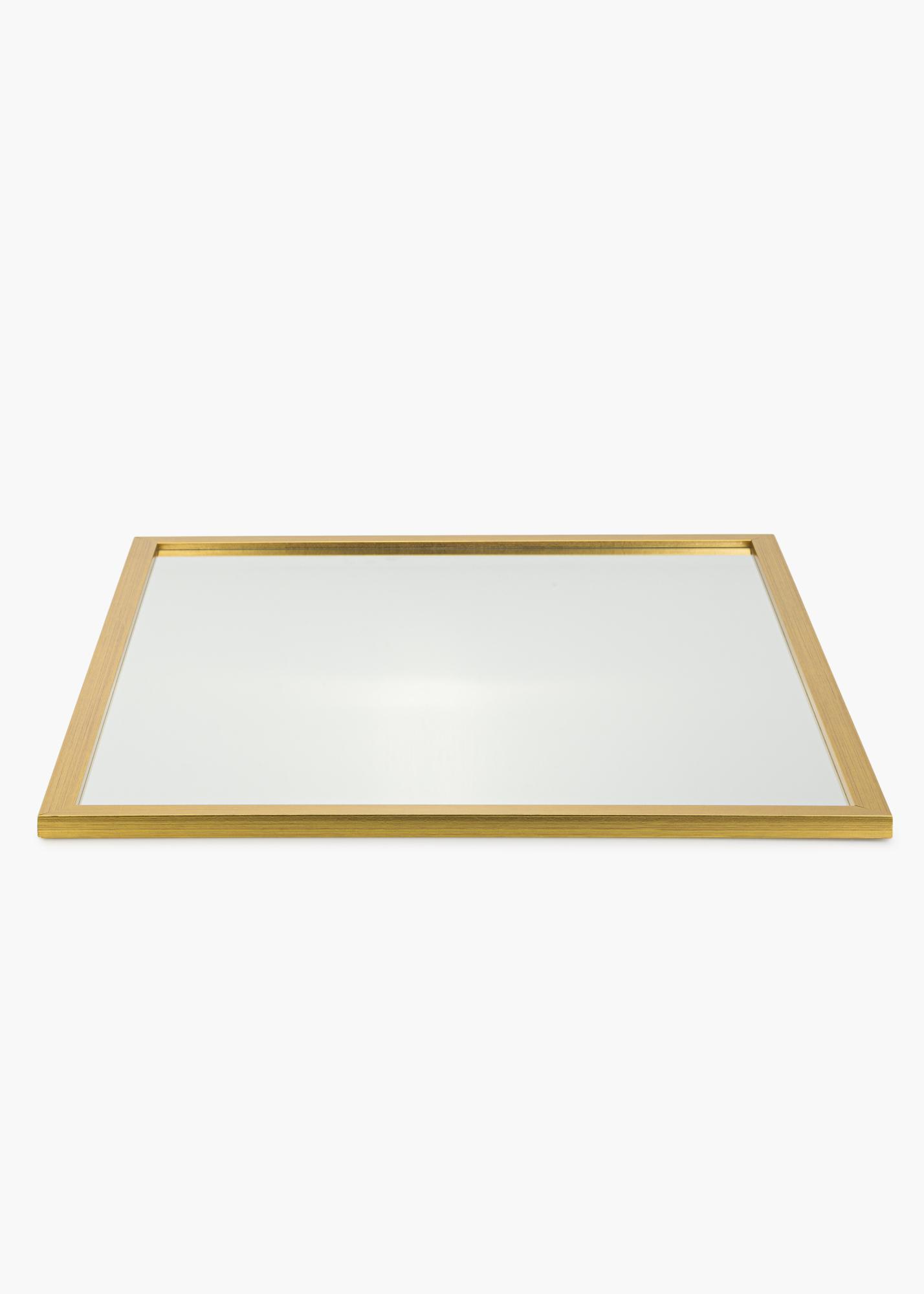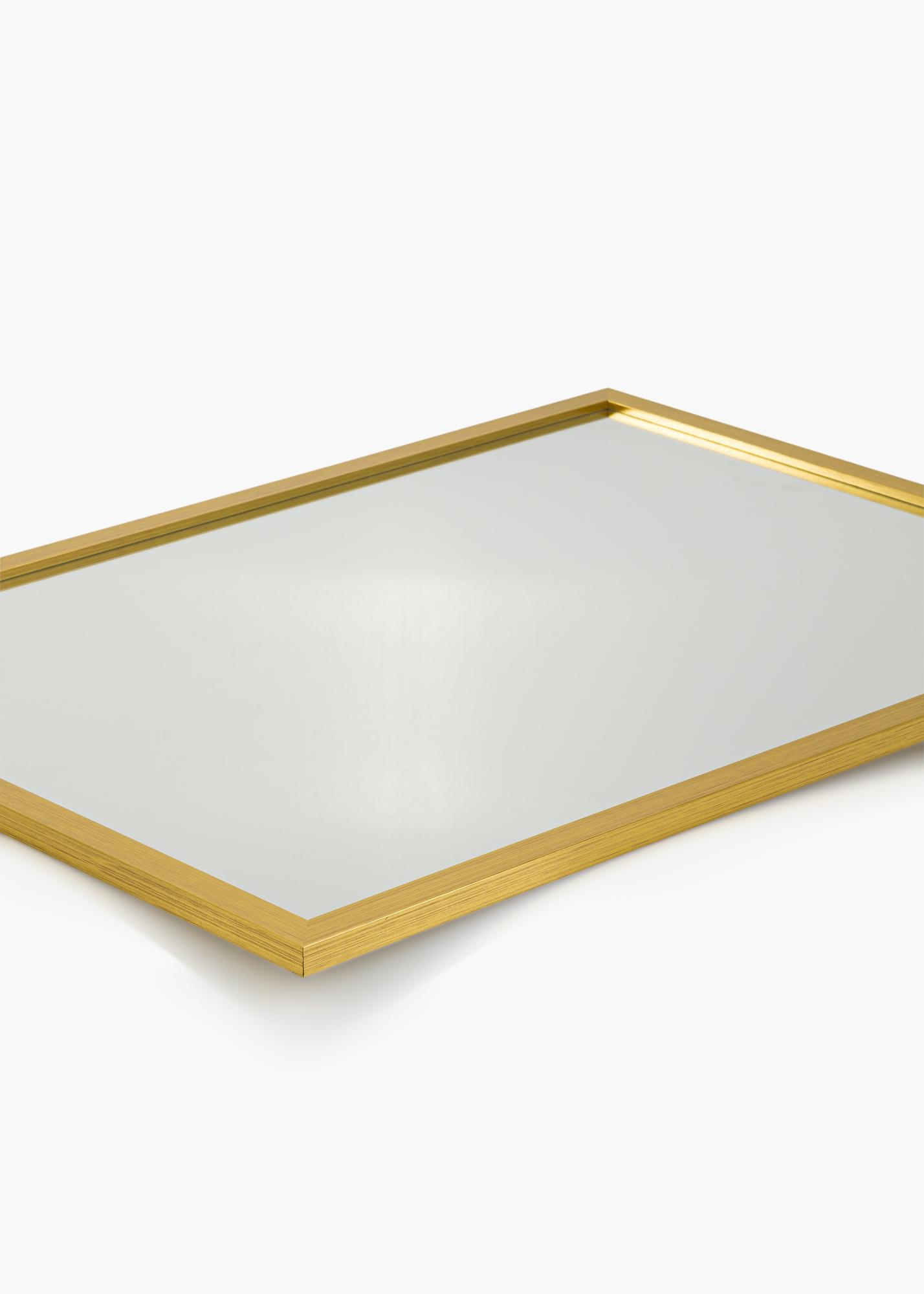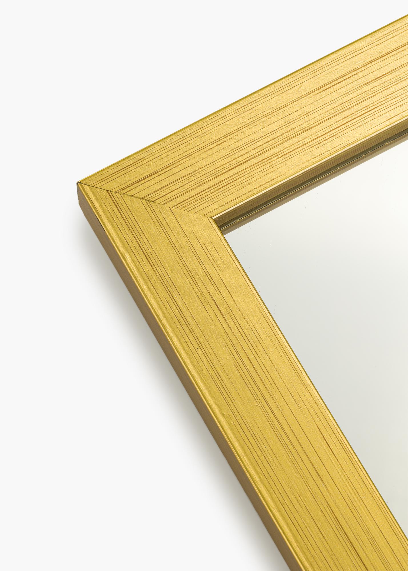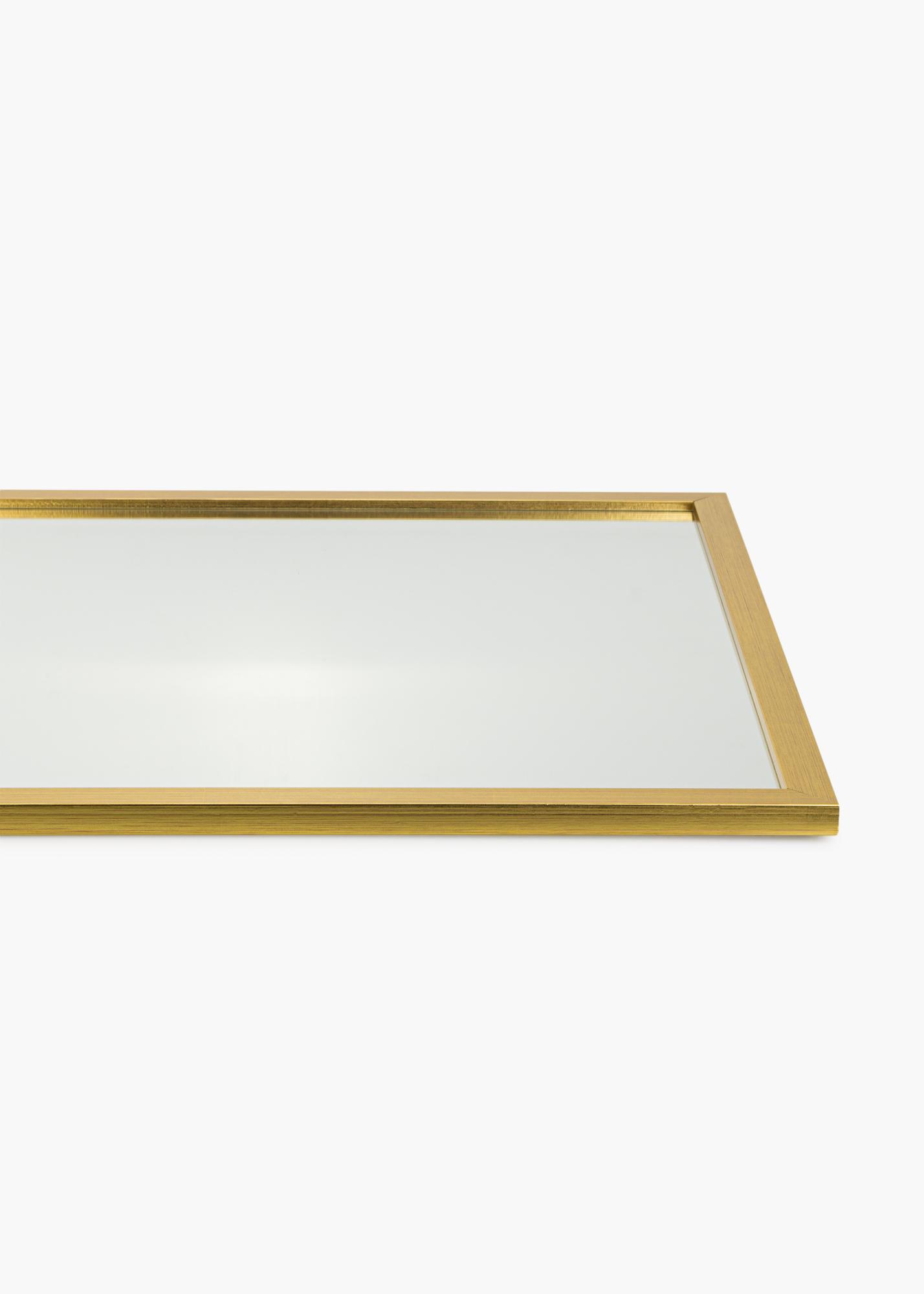 Gold Wood - när enkelhet möter flärd! Detta är en väggspegel med en 22 mm bred ram tillverkad i ayosträ. Ramen har en klassisk rak profil som ger hela spegeln en avskalad känsla, samtidigt som den målade guldfärgen tillför en touch av elegans.