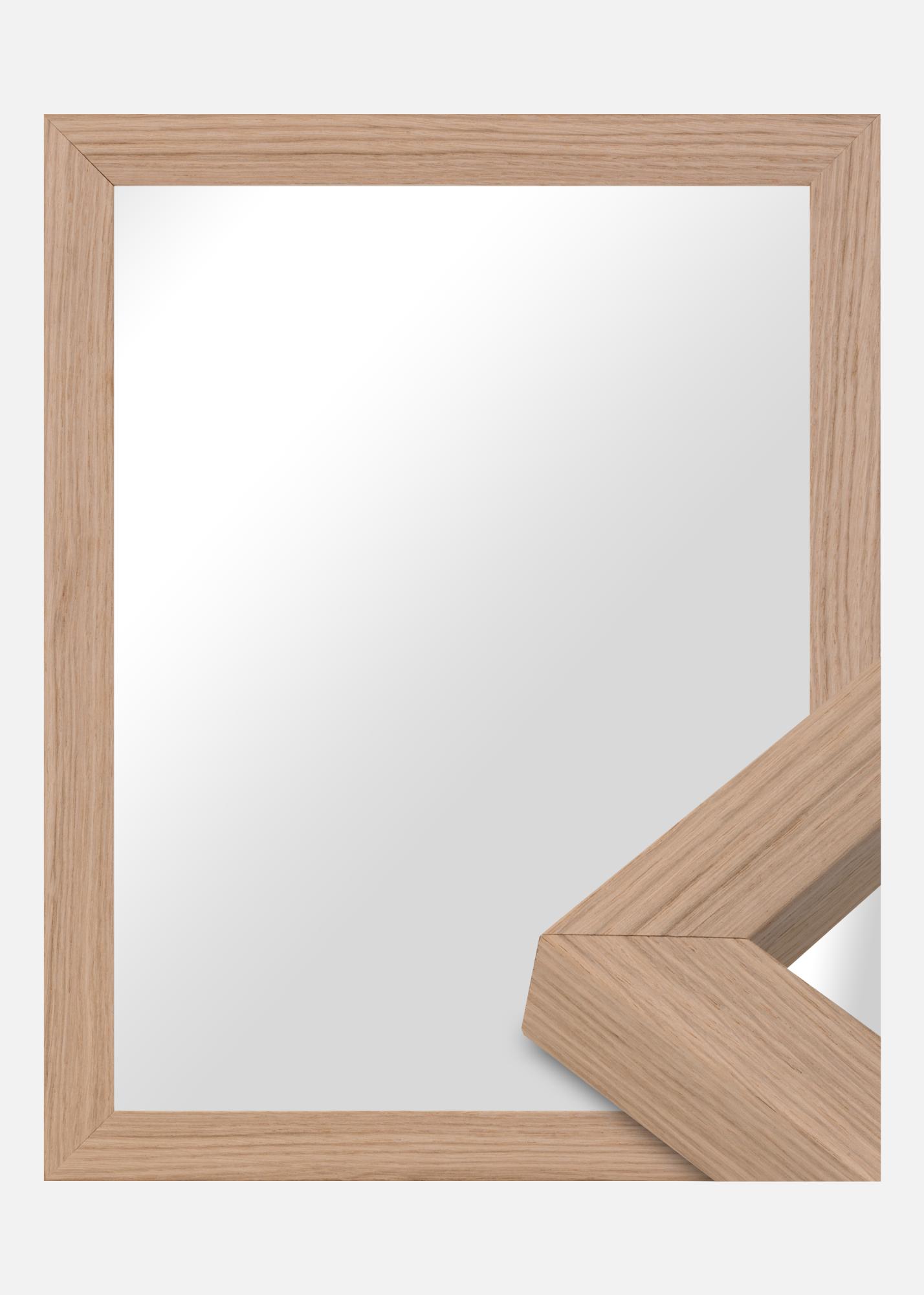 Ramen är tillverkad av furu, vilket gör den både hållbar och lätt. Djupet på 32 mm ger spegeln en stabil konstruktion och gör att den sitter säkert på väggen. Den varma tonen i ekmönstret framhäver spegelns tidlösa design och gör den lätt att matcha med olika inredningsstilar.