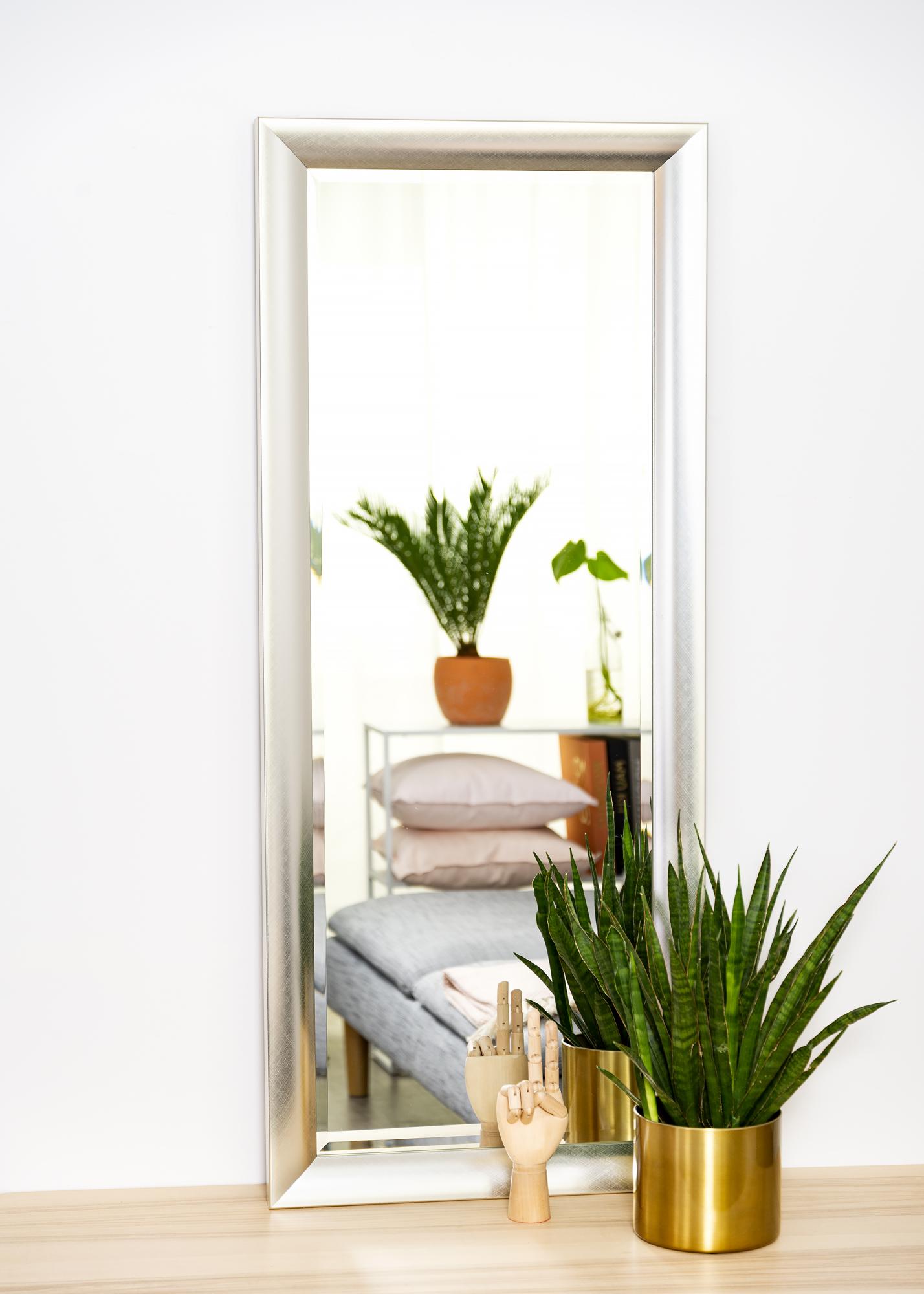 Sätt extra lyx på din interiör med denna stilfulla spegel! Ramytan har ett borstat symmetriskt mönster som tillsammans med de fasade glaskanterna skapar en exklusiv känsla. Välj mellan måtten 50x130 cm och 60x150 cm.