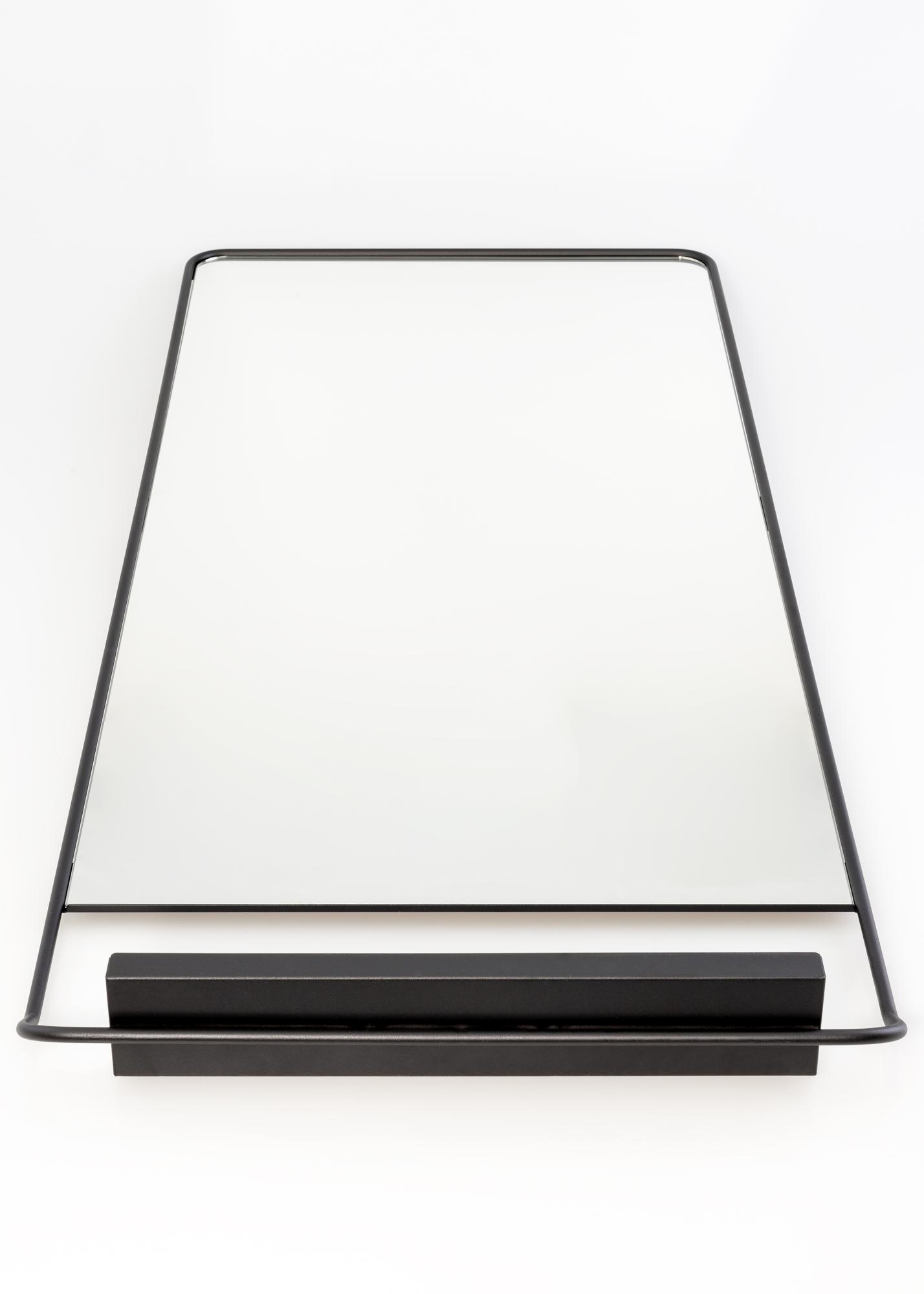 Spegel med hylla från House Doctor. Spegeln har en underbar tidlös design med rundade hörn och en smal svart metallram. Perfekt i hallen eller som en läcker detalj i sovrummet.
