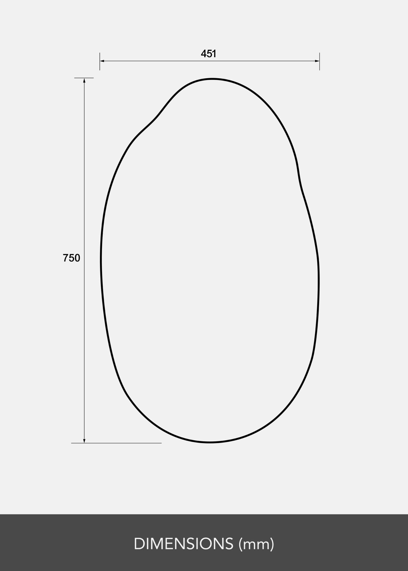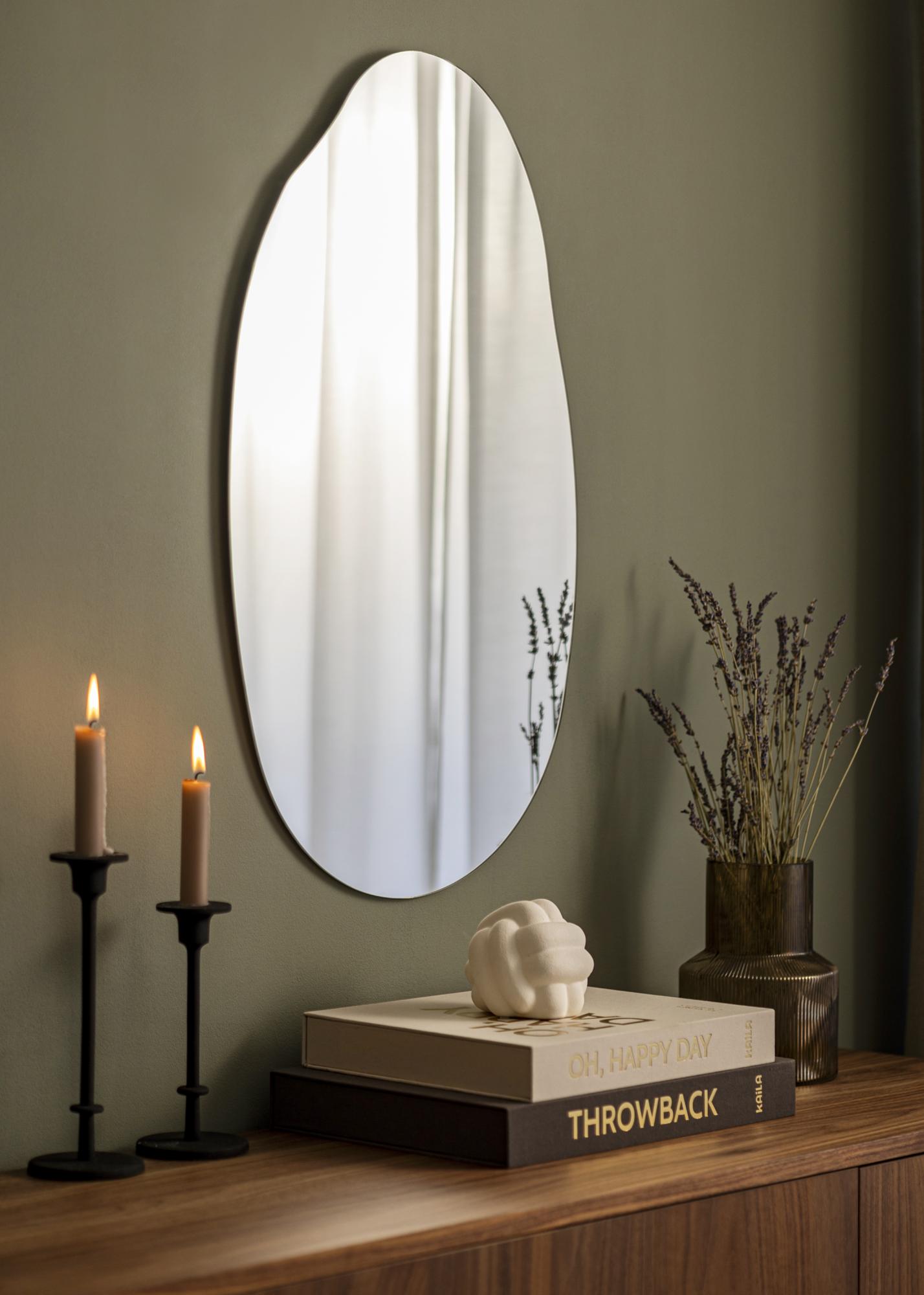 Upptäck den eleganta och moderna spegeln som är designad för att ge ditt rum en känsla av rymd och ljus. Med sina generösa mått på 45x75 cm passar denna spegel perfekt i såväl små som stora utrymmen. Dess unika form är avlångt oval och övergår mjukt till en avsmalnande form upptill, vilket skapar en sofistikerad och samtida profil som fångar blicken.