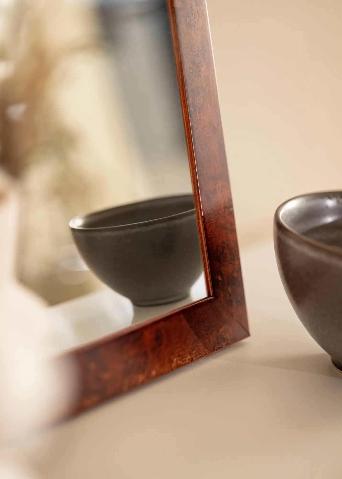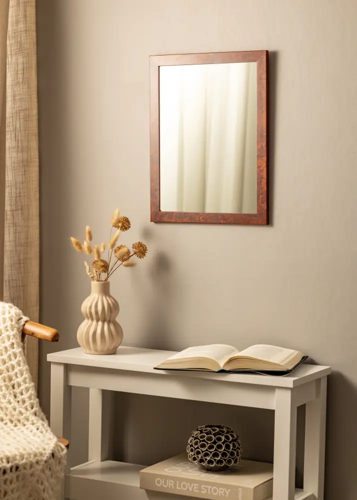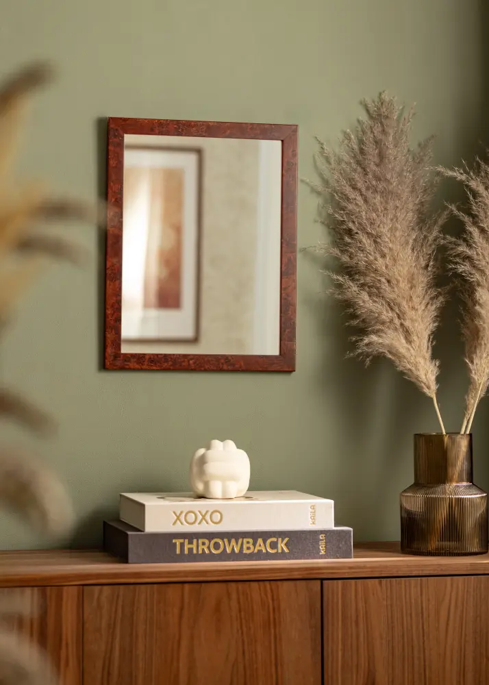 Elegant träram i en mörkbrun färg som passar bra när du söker en spegel i klassisk stil.