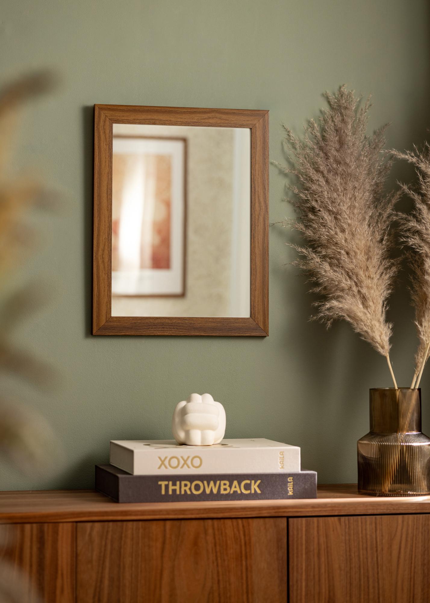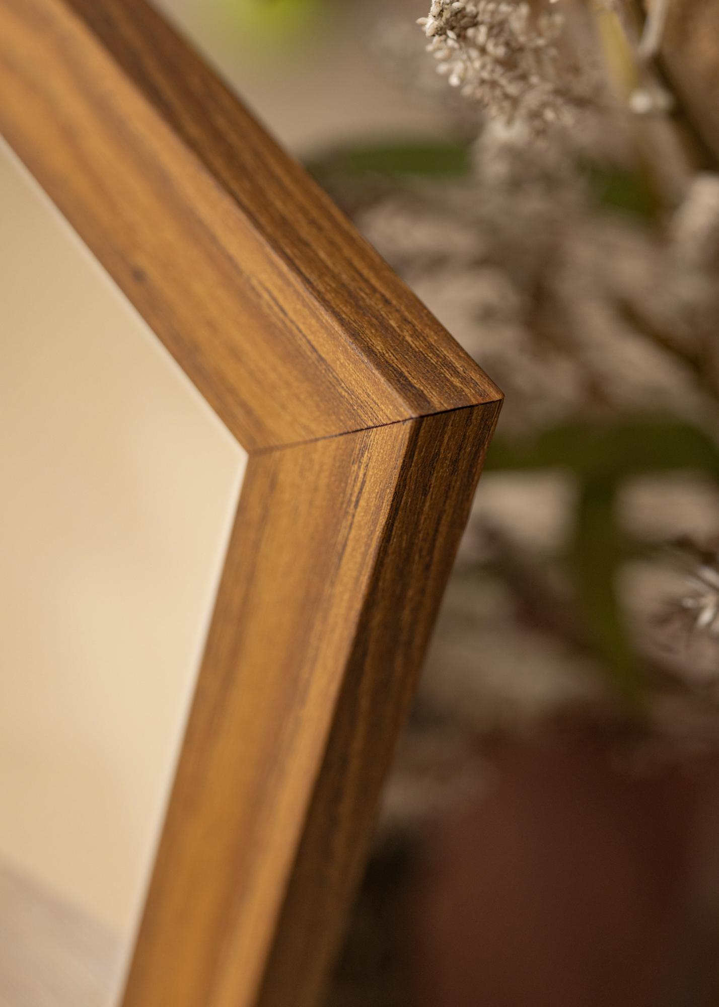 Lackad ljusbrun träram av fingerskarvad furu med en bred profil på 40 mm. Perfekt när du söker en snygg spegel med träram med en bred profil.