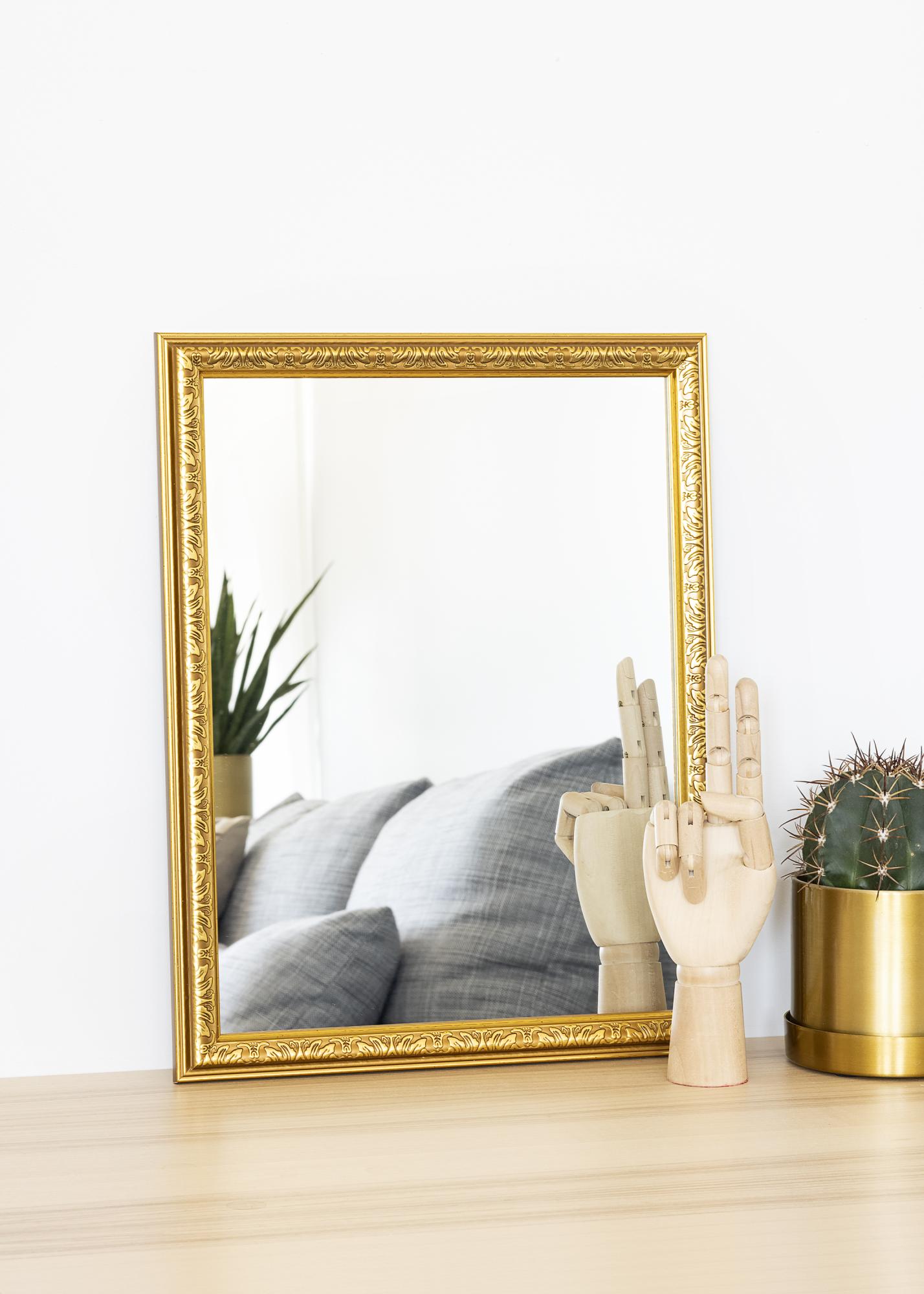 Starta ramväljaren »Nost Guld heter en serie väggspeglar. Ramen är rikligt dekorerad av oregelbundna symboler som ger ett lite mystiskt intryck.