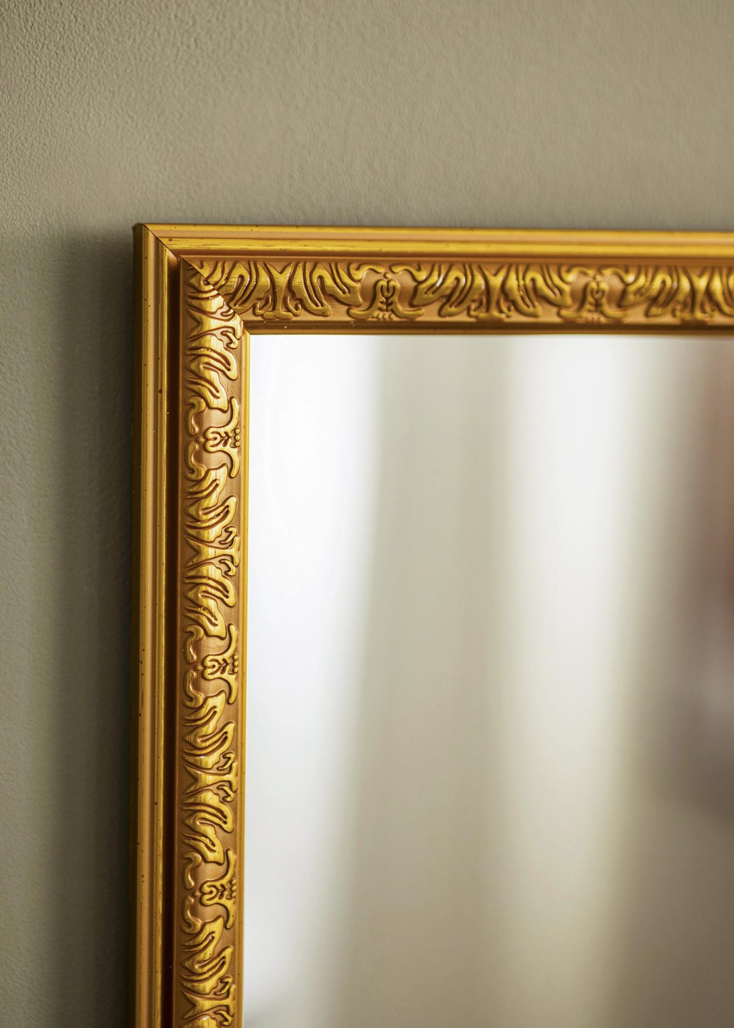 Är du på jakt efter en lyxig guldfärgad spegel kan du sluta leta nu. Nostalgia Guld är en väggspegel med 2,8 cm bred ram med elegant profil och ett vackert dekorativt mönster. Spegelglaset kommer att reflektera ljuset i ditt rum, samtidigt som spegeln själv blir en stilfull detalj uppe på din vägg. På baksidan finns väggfäste för enklare upphängning.