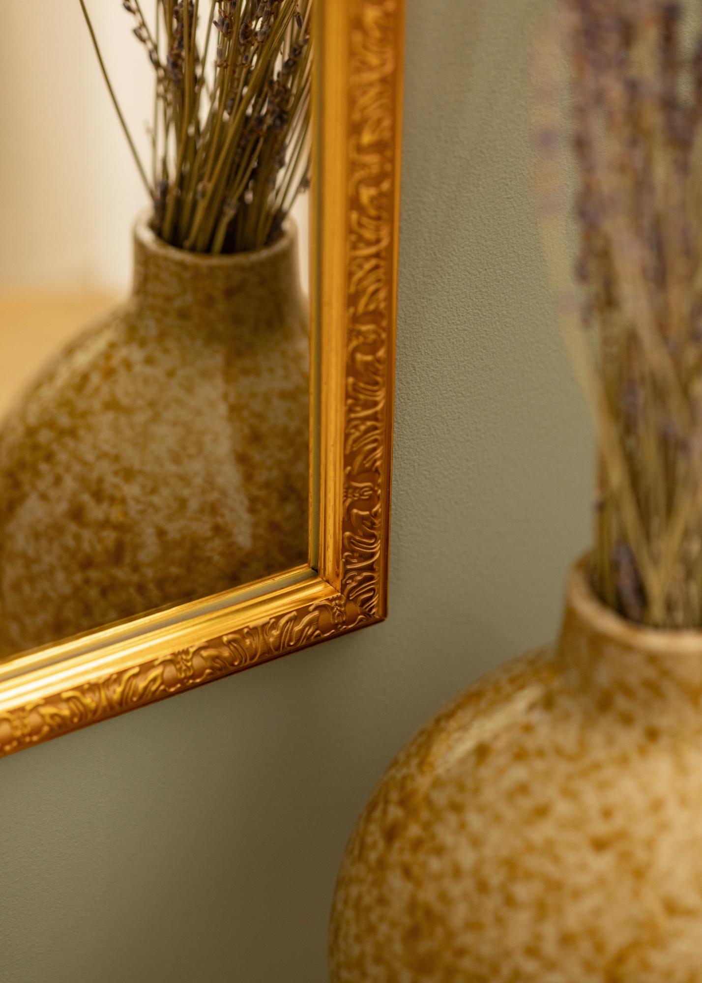 Är du på jakt efter en lyxig guldfärgad spegel kan du sluta leta nu. Nostalgia Guld är en väggspegel med 2,8 cm bred ram med elegant profil och ett vackert dekorativt mönster. Spegelglaset kommer att reflektera ljuset i ditt rum, samtidigt som spegeln själv blir en stilfull detalj uppe på din vägg. På baksidan finns väggfäste för enklare upphängning.