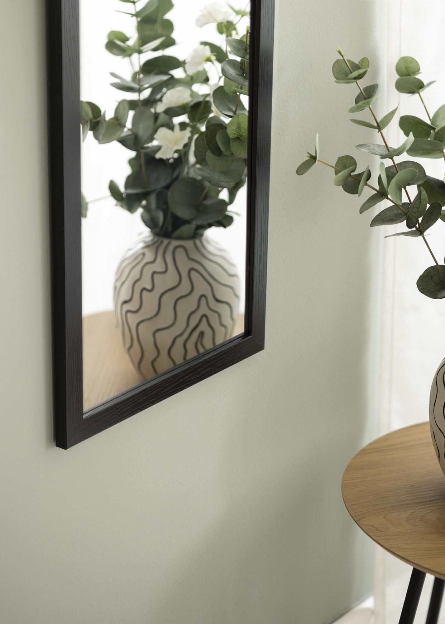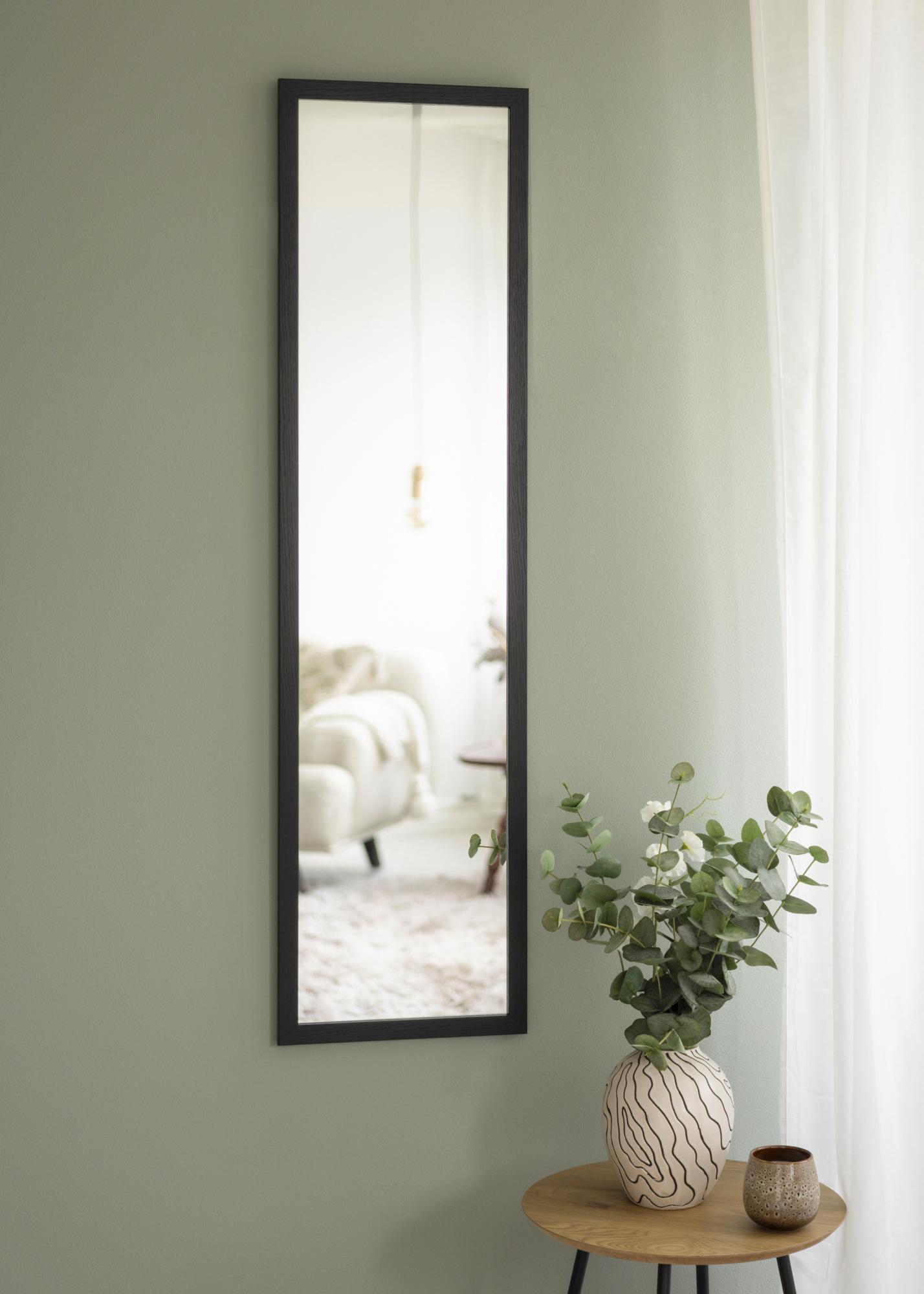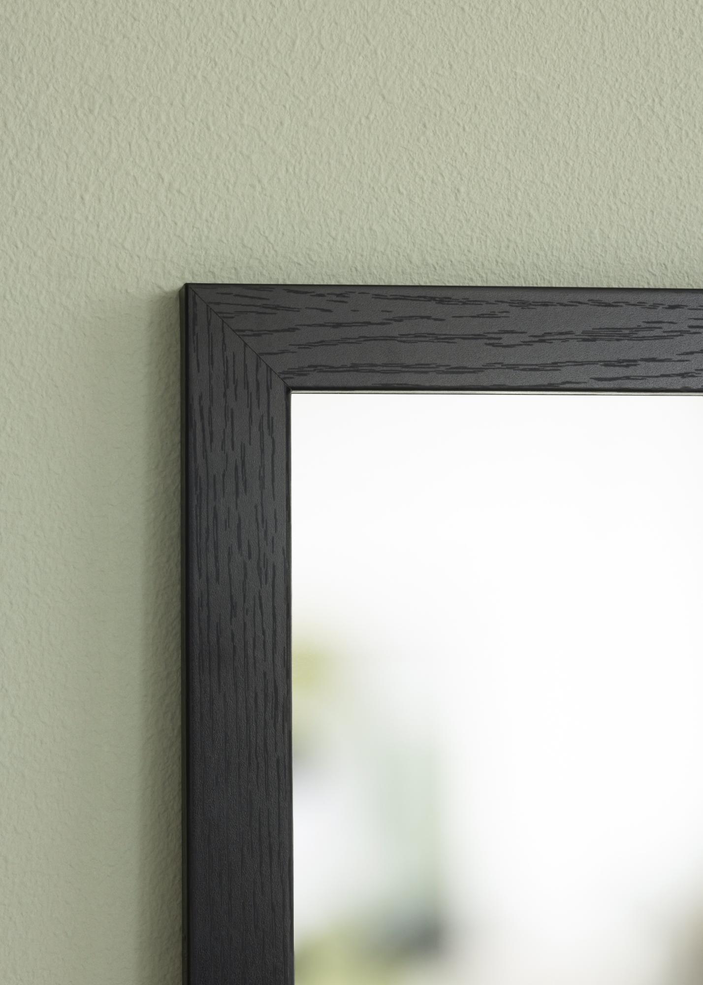Den här dörrspegeln har en slank och modern träram i svart färg som ger ett varmt och naturligt uttryck. Den matta ytan gör att spegeln känns diskret samtidigt som den tillför struktur och karaktär till rummet.