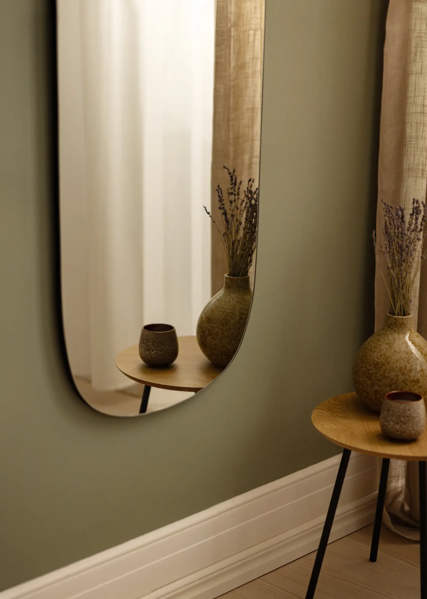 Denna coola spegel i modern dansk design från Incado är i 138x55 cm. Detta är en bra storlek för många typer av rum, så man kan ha den precis var man vill i sitt hem. Baksidan är av trä och djupet ligger på 14 mm. Spegelglaset är ofärgat för en stilren och fräsch känsla.