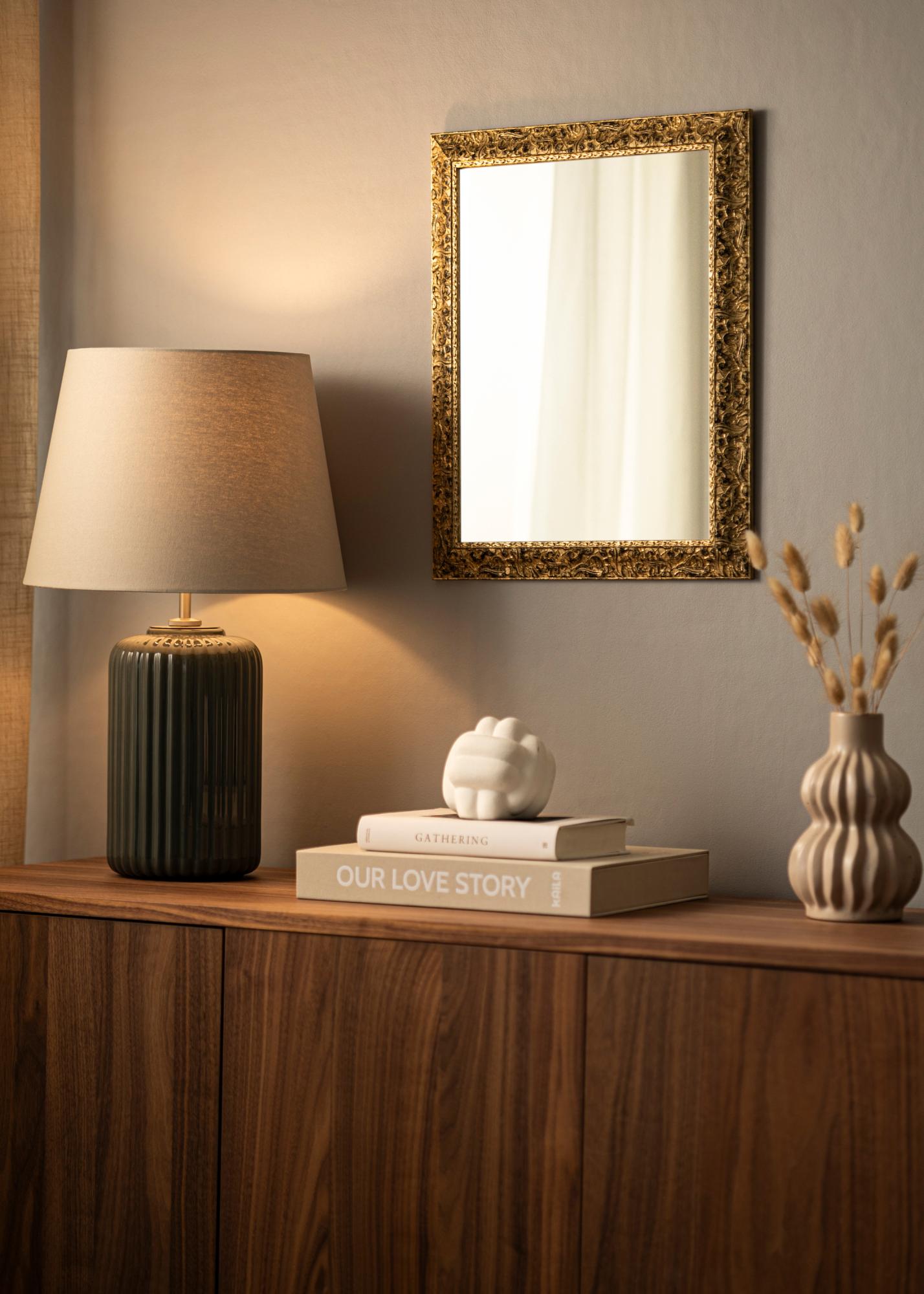 "Ralph Guld" är en snygg spegel tillverkad i Italien av högsta kvalité. Med sin rikligt dekorerade profil är detta en vacker spegel som passar lika bra i badrummet som hallen.