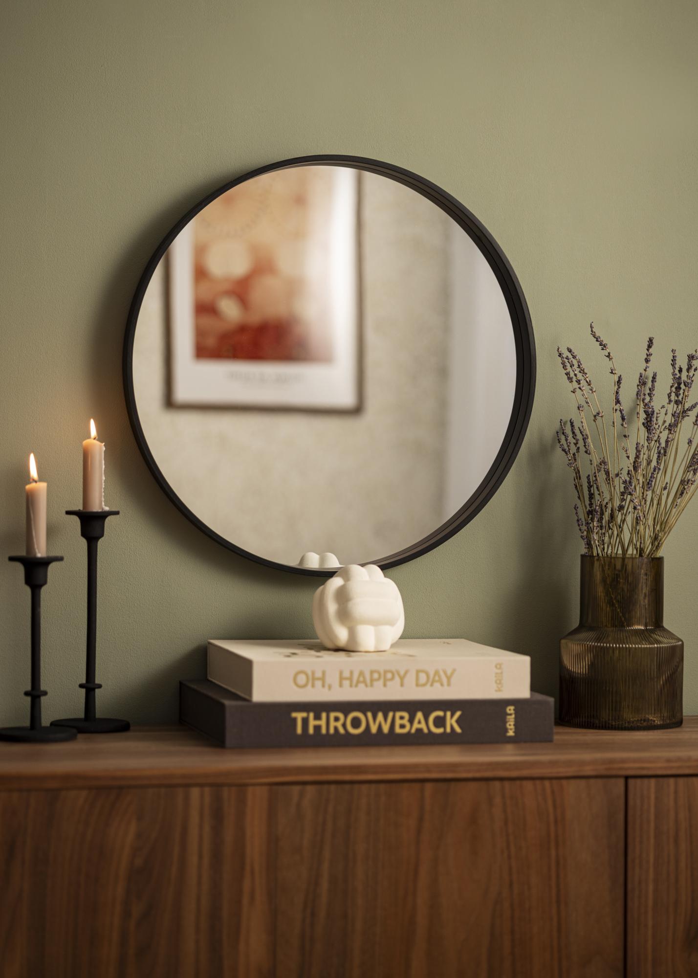 Upptäck den eleganta enkelheten i vår runda spegel, en tidlös inredningsdetalj som passar perfekt i varje hem. Den här stilrena, runda spegeln utmärker sig med sin svarta ram, som ger en fräsch och modern känsla till rummet. Dess minimalistiska design gör att den smälter in i olika inredningsstilar, från skandinavisk till industriell.