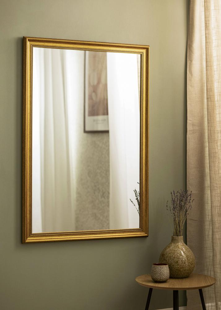 Rokoko är en spegelserie med vacker ram i elegant rokoko-stil. Ramen är guldfärgad, vilket ger spegeln en stor känsla av lyx. Den dekorativa och lyxiga utformningen gör spegeln till en perfekt inredningsdetalj i hallen, sovrummet eller vardagsrummet. Spegeln finns i olika storlekar, så att du kan välja den som passar bäst in i ditt hem. Denna spegel mäter 70x100 cm.
