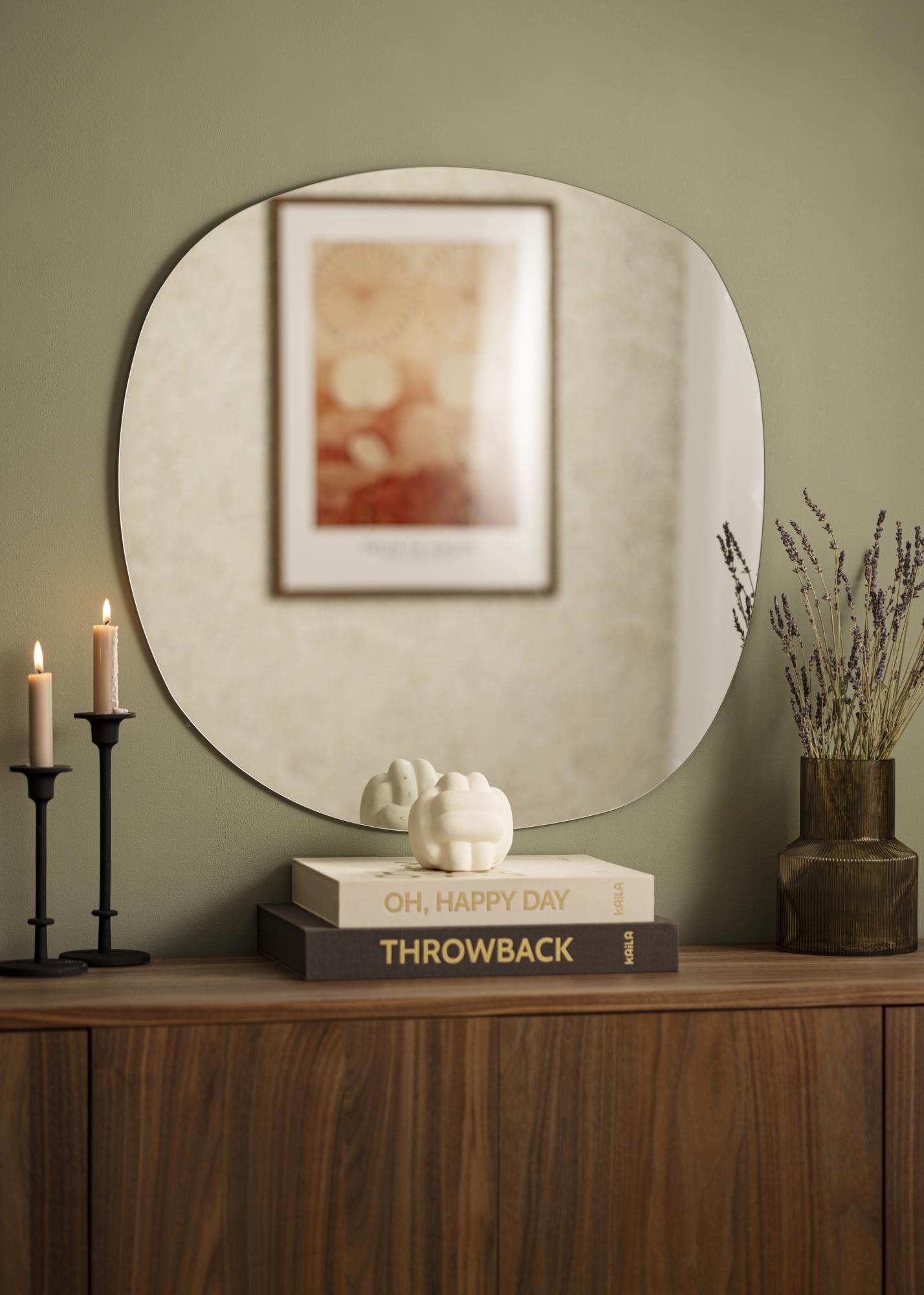 Upptäck den eleganta enkelheten i vår moderna spegel, perfekt för att addera en känsla av rymd och ljus till varje rum. Med sina generösa mått på 70x70 cm, erbjuder denna spegel en praktisk och dekorativ funktion i ditt hem. Spegeln har en mjukt rundad, kvadratisk form med avrundade hörn som ger en modern och stilren look.