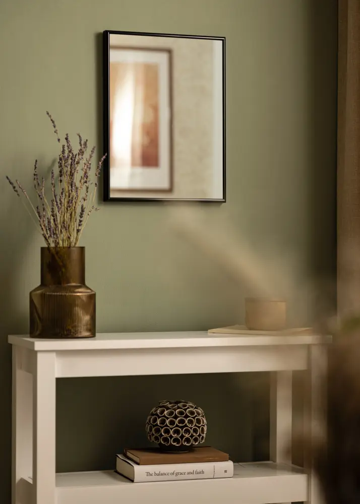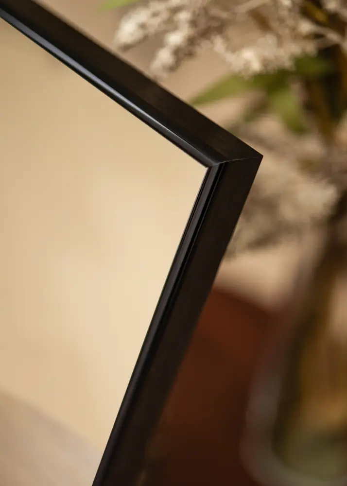 Sandhamn ger din spegel en exklusiv inramning med sin högblanka svarta profil med ett djup på hela 26 mm som gör att din spegel kommer ut en bit från väggen.