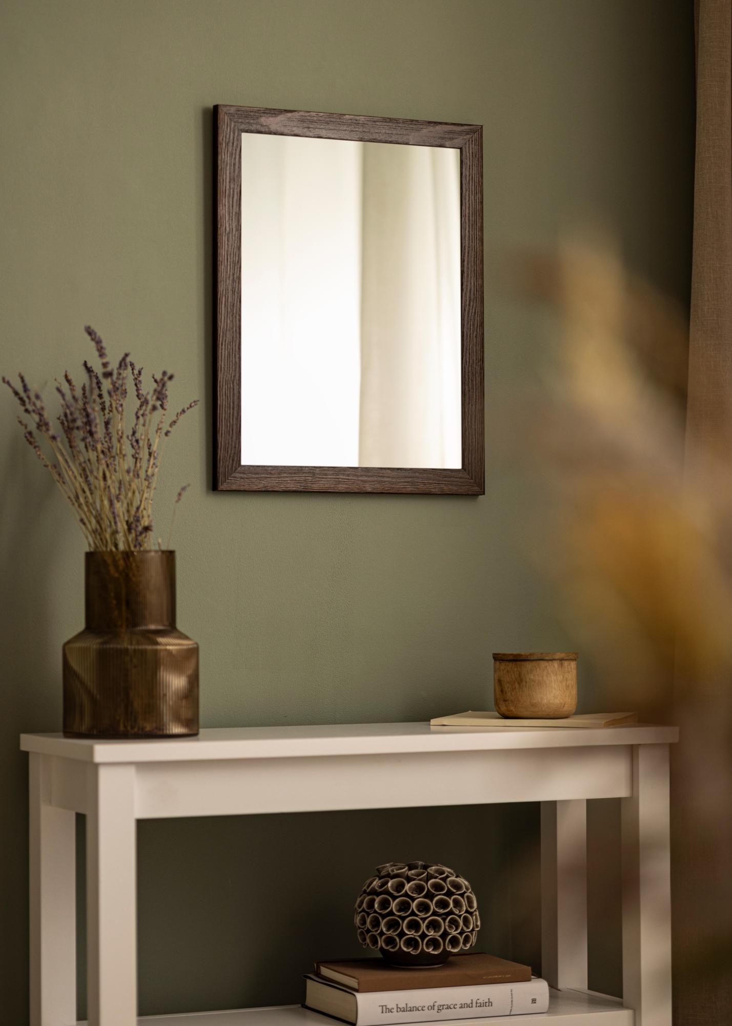 Gedigen brun spegelram med synliga träådringar med en bred profil. Passar bra när du söker en mörk träram med en naturlig känsla.