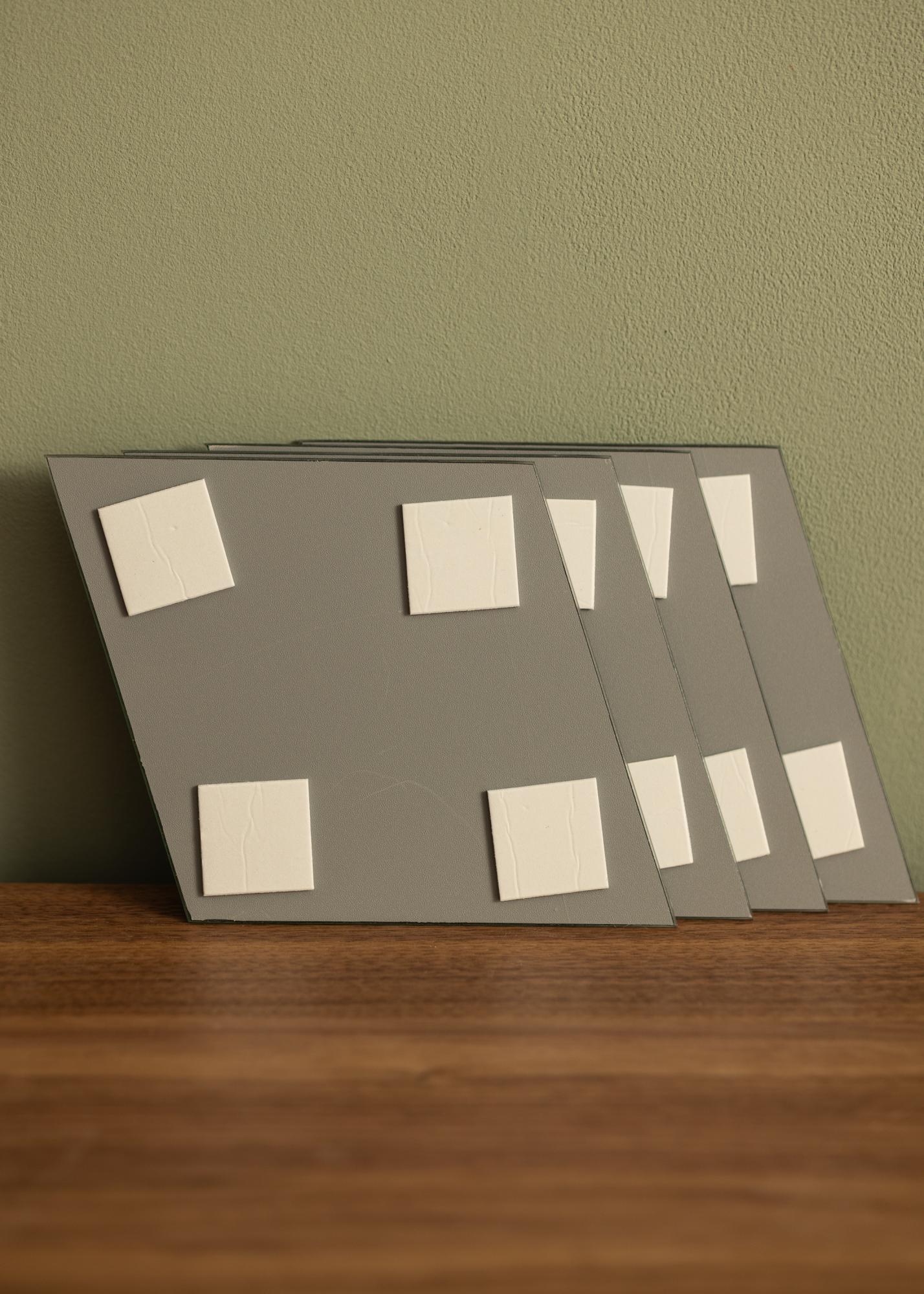 Med dessa speglar kan du skapa en unik väggdekor i vilken skepnad du vill. Sätt dem tillsammans, i rad, i olika grupper – eller hur du än vill! Vill du ha en riktigt stor och effektfull väggdekor kan du köpa flera paket och bygga högt och brett. Varje enskild spegel har en storlek på 18x20 cm.