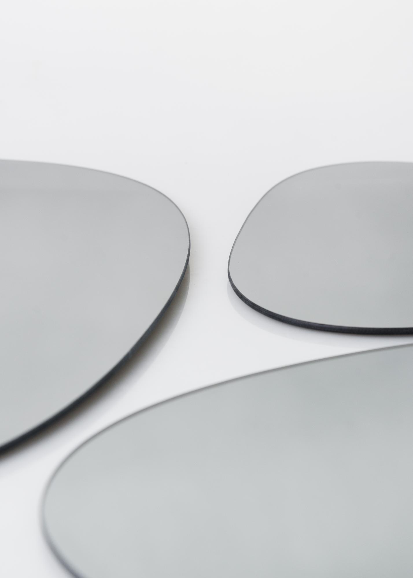 Detta spegelset kommer från danska Incado och det innebär att det är hög kvalitet och hög trendfaktor på speglarna. Att de är i tonat spegelglas i varmgrå kulör gör att de blir extra läckra och det är en kul design med de olika storlekarna.