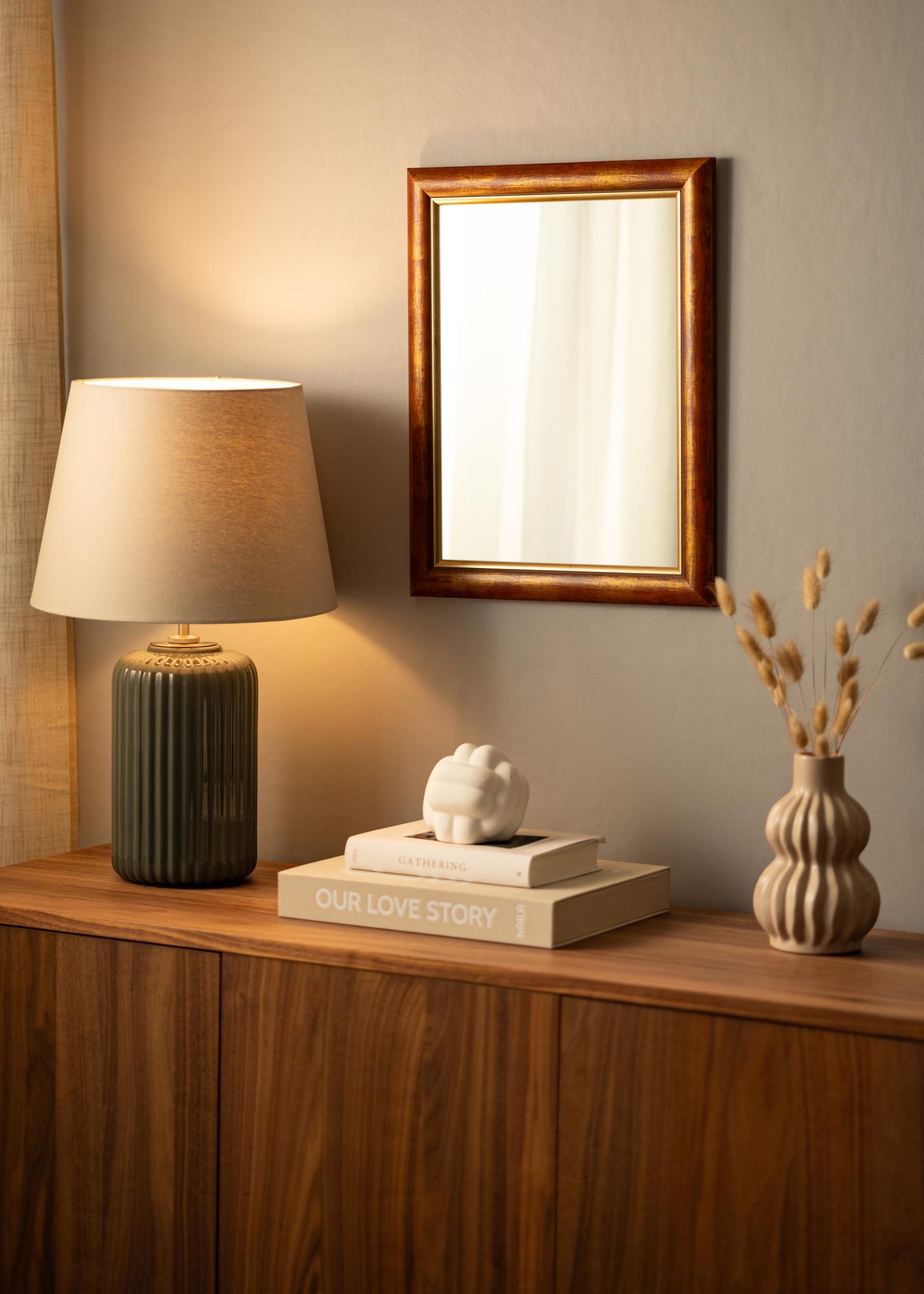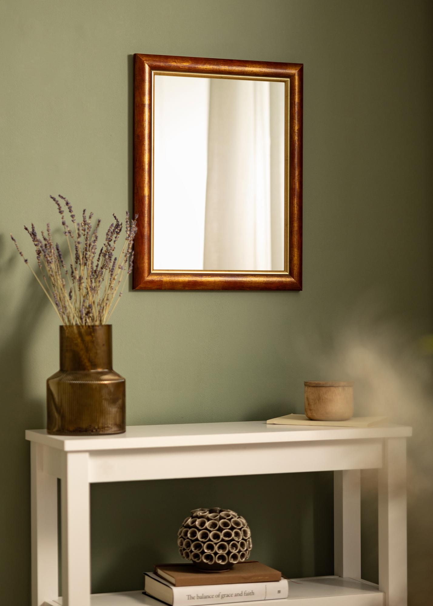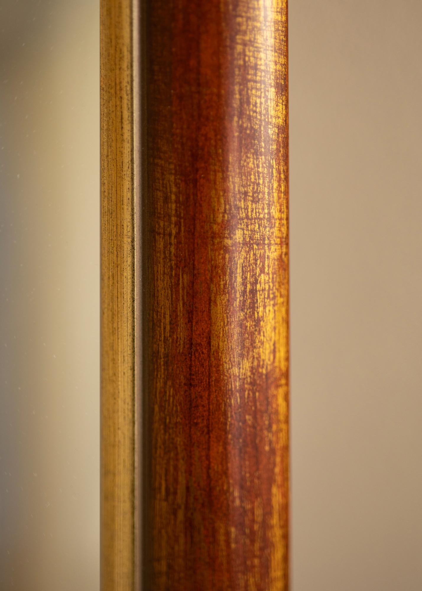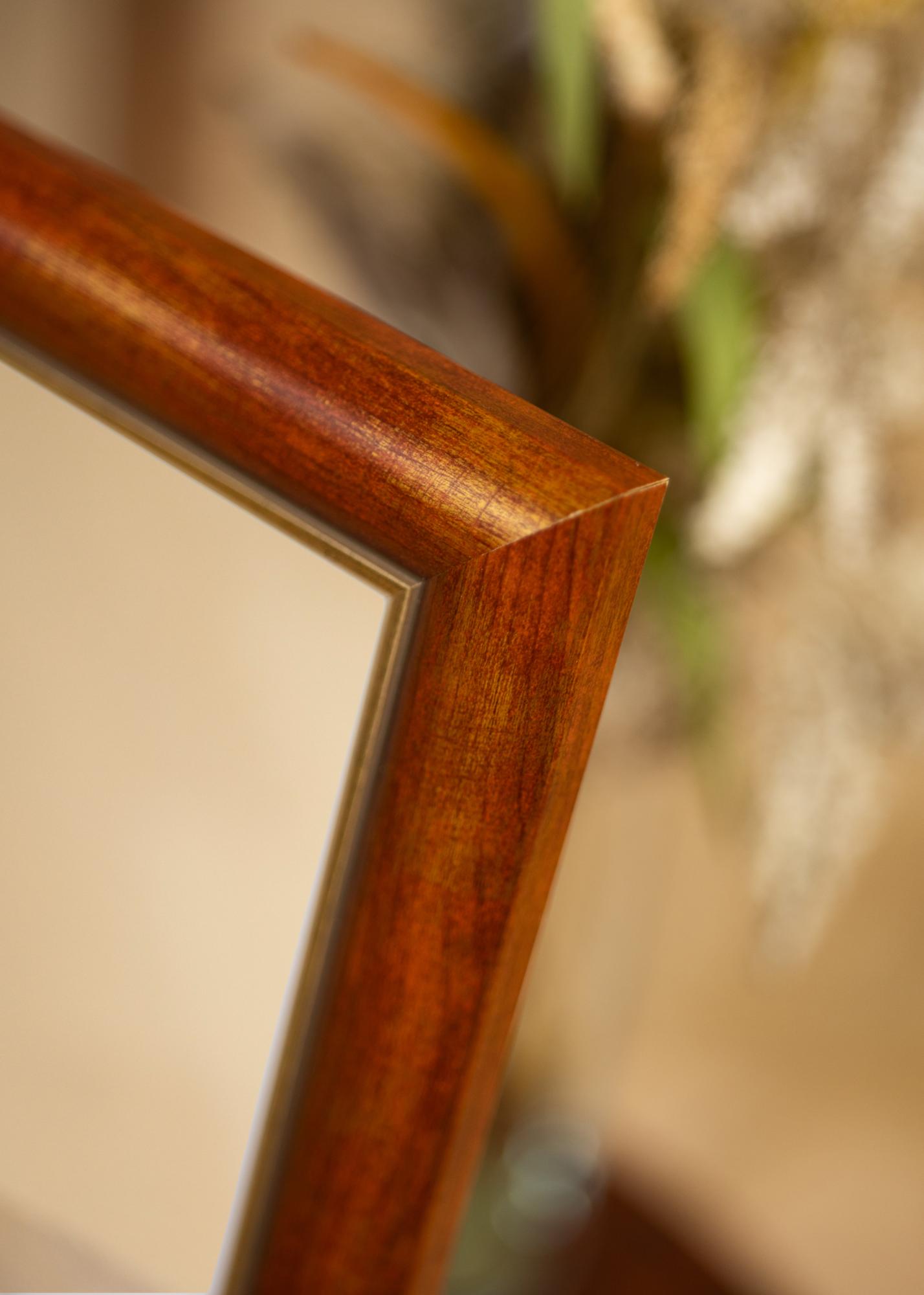 Tidlös trälist tillverkad i Finland med en snygg rödtonad träyta med en guldkant närmast spegelglaset. Ramen har en bred profil på hela 41 mm och ett djup på 19 mm vilket ger ett extra djup till din spegel.