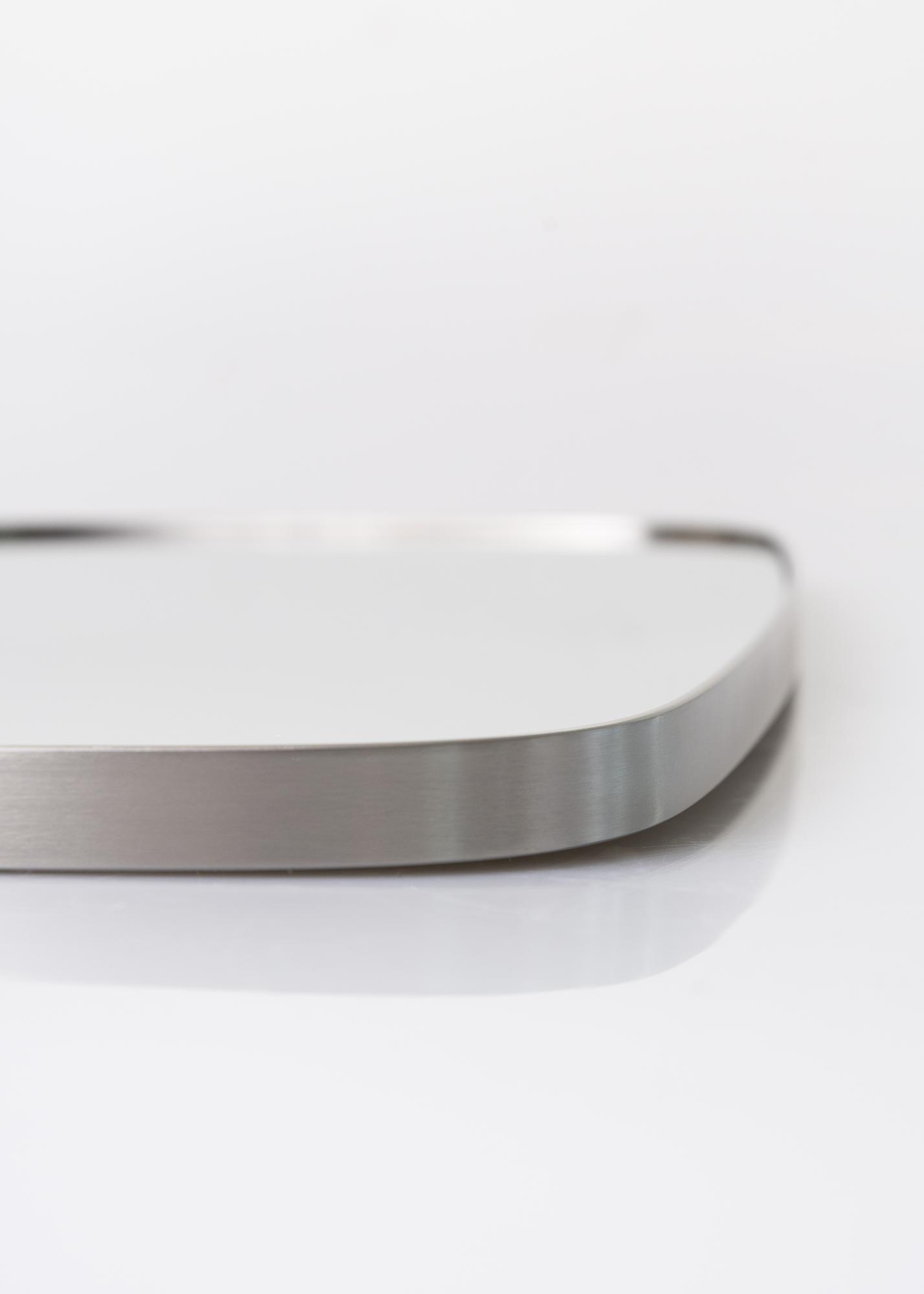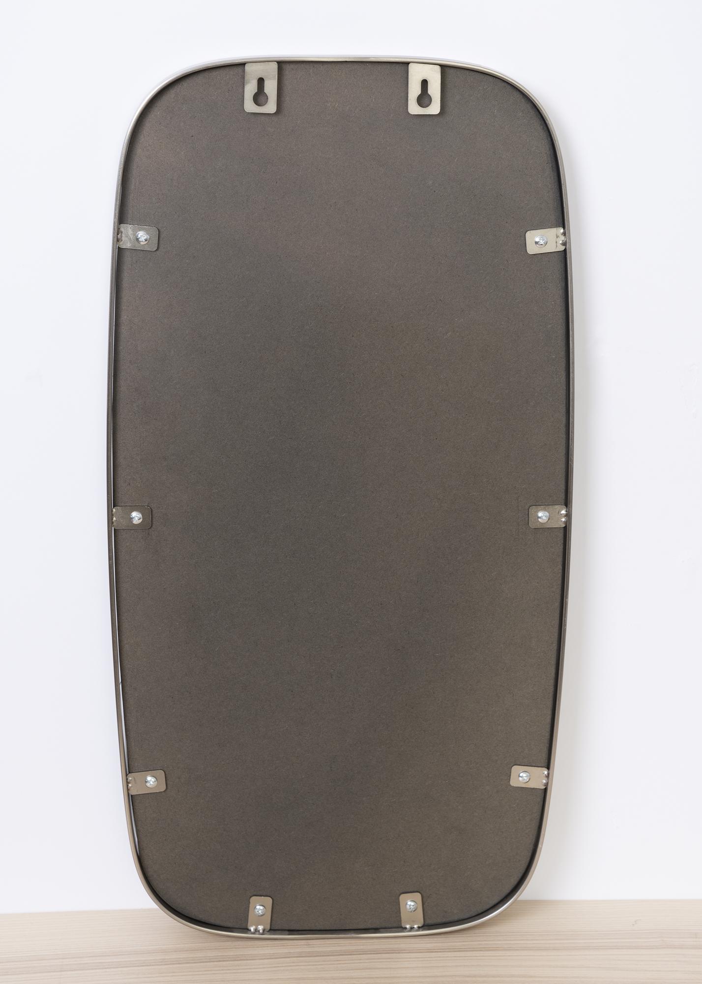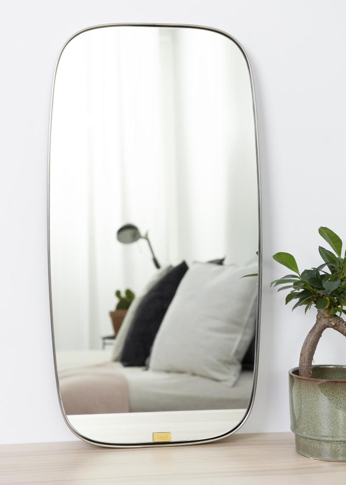 Denna väggspegel är omgiven av en tunn och stilren metallram. Samtidigt gör den ovala formen att spegeln känns mjuk och elegant, vilket gör att denna spegel passar till de flesta inredningsstilar och hem.