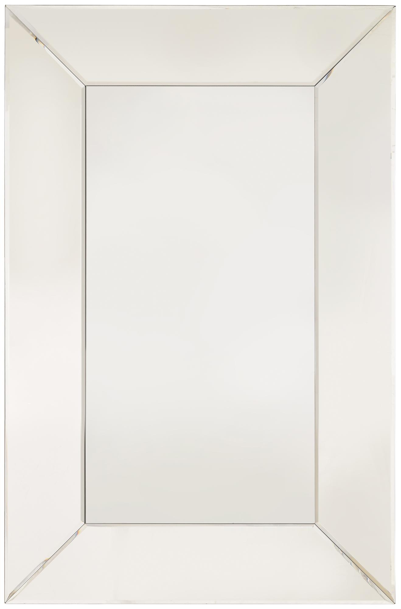 Denna rektangulära väggspegel är ett mycket bra exempel på stilren design som ändå sticker ut. Ramen utgörs av breda glaspaneler med vackert fasettslipade kanter, vilket ger spegeln ett mycket elegant intryck.