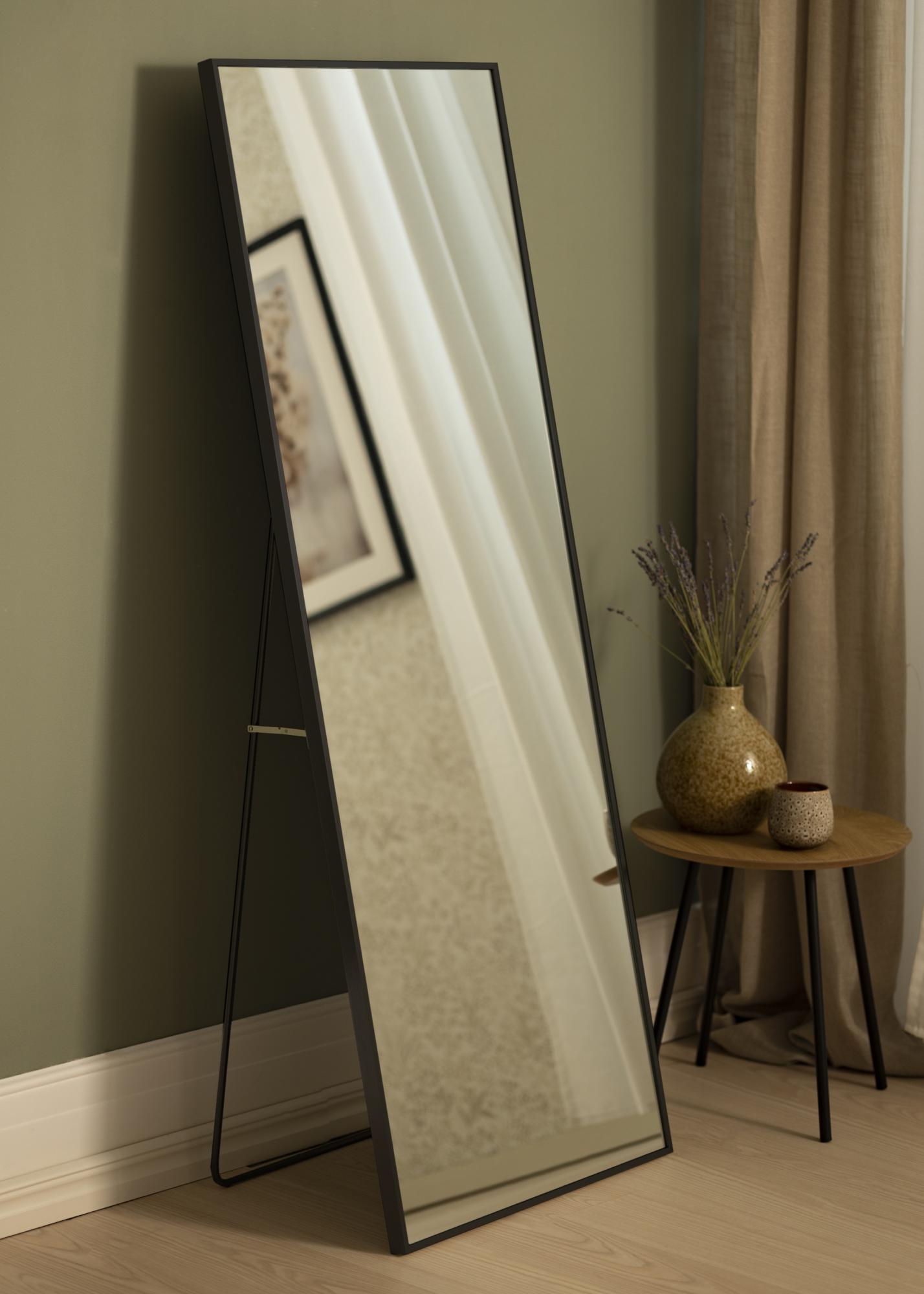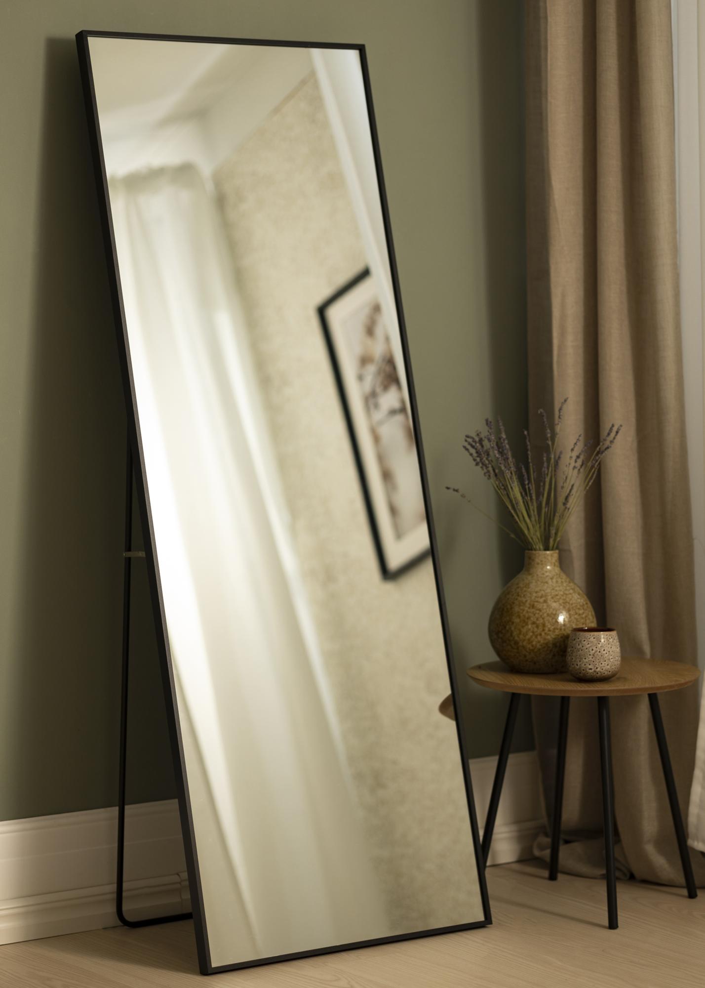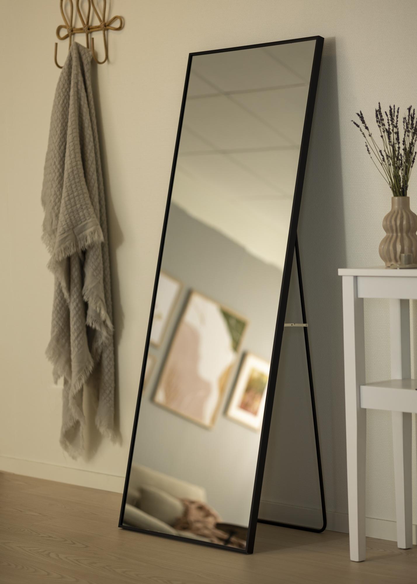 Upptäck den eleganta och funktionella designen med vår golvstående spegel. Med sina generösa mått på 55x150 cm blir denna spegel en praktfull detalj i ditt hem. Den rektangulära formen kompletteras av en sofistikerad tunn svart aluminiumram, som tillför en modern och stilren känsla till vilket rum som helst.