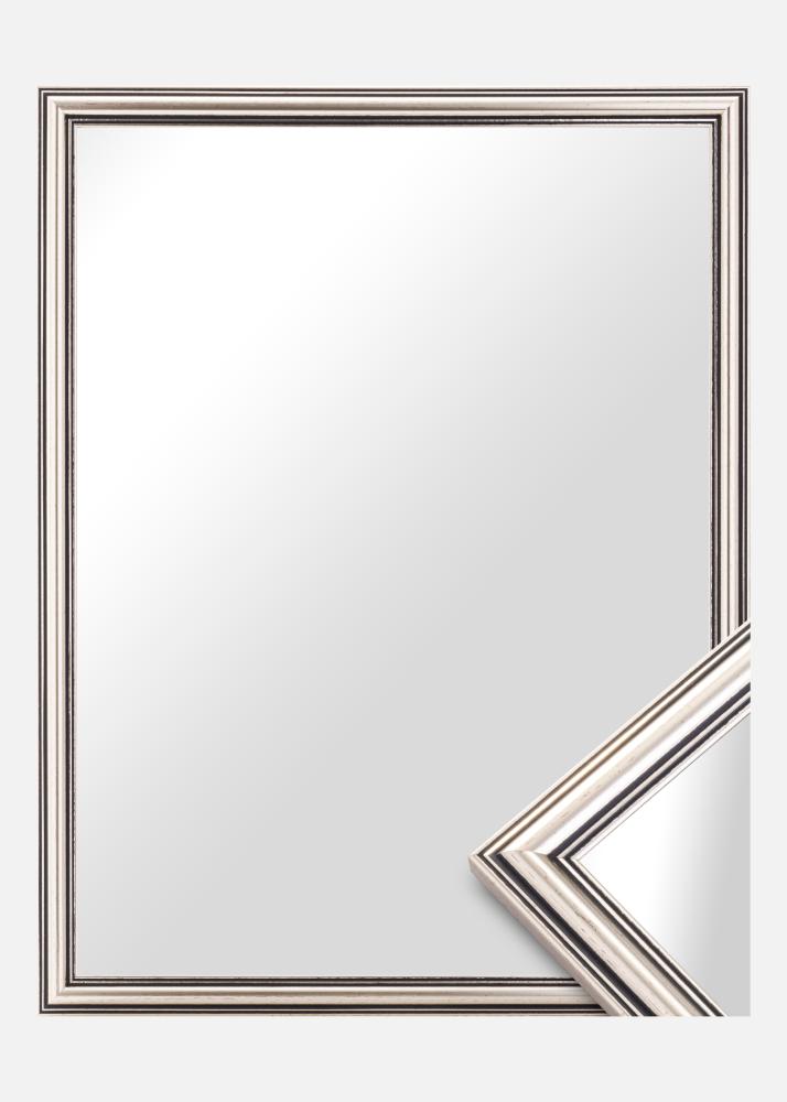 Silvriga inredningskomponenter sätter klass på ditt hem! Här har vi en snygg måttbeställd spegel med en profilerad list. Spegeln blir extra fin ihop med färger som svart, silver och lila. Eftersom den är måttbeställd kan du vara säker på att den passar precis där du vill ha den.