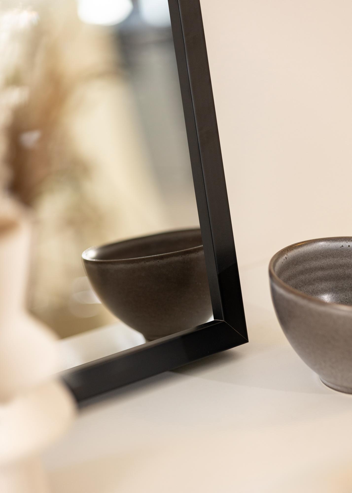 Ramen på Spegel Thor Svart är 20 mm bred och ger spegeln en diskret men ändå tydlig inramning. Den svarta färgen på ramen skapar en fin kontrast mot spegelglaset och bidrar till en sofistikerad look. Med ett djup på 40 mm har spegeln en robust känsla utan att bli klumpig, vilket gör den lätt att placera även i mindre rum eller trånga utrymmen.