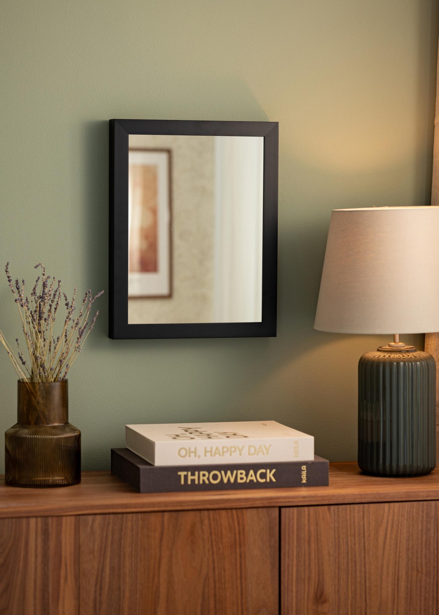 Denna spegel har en elegant svart färg som ger ett sofistikerat och stilrent intryck i vilket rum den än placeras. Den 30 mm breda ramlisten ramar in spegeln på ett smakfullt sätt och bidrar till dess moderna utseende. Med ett djup på 50 mm får spegeln en robust känsla samtidigt som den behåller sin elegans.
