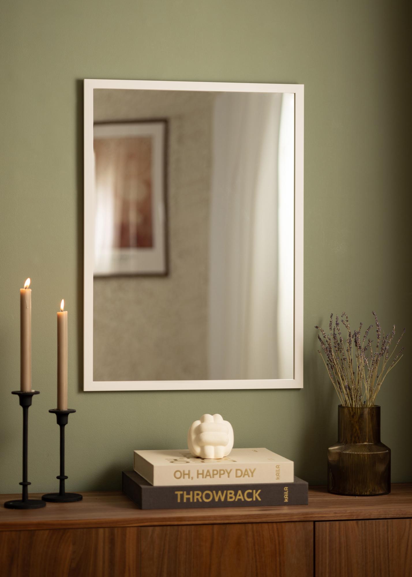 Spegel med stilren vit träram