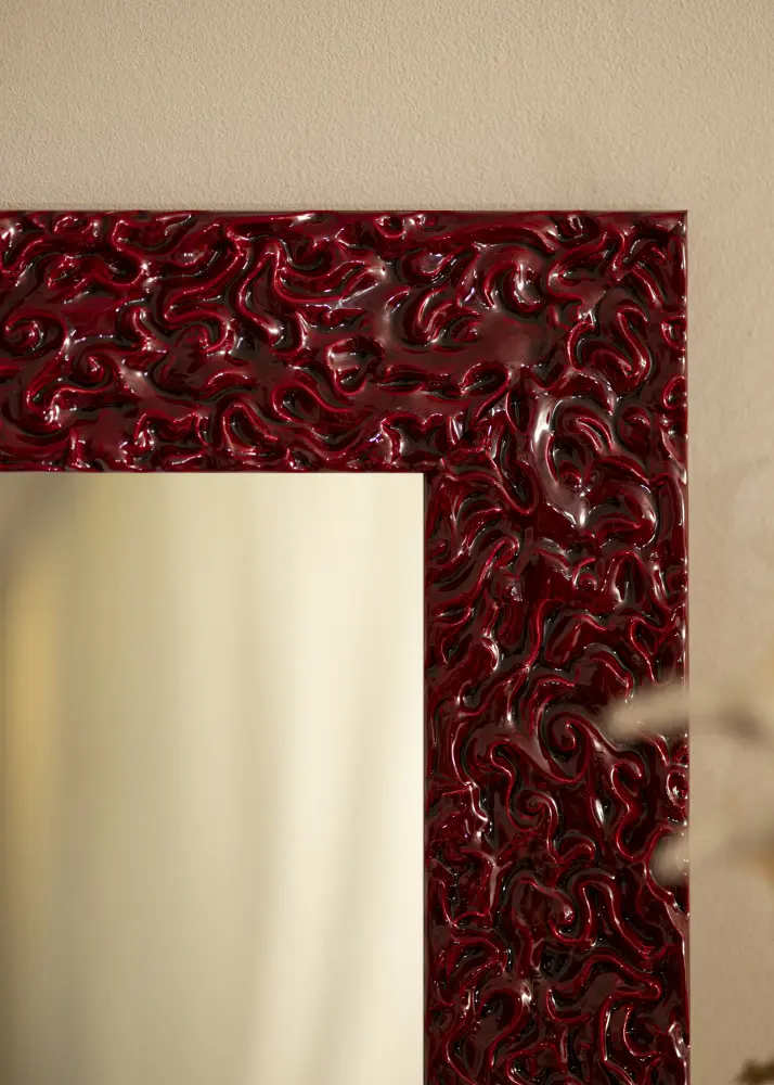 Spegel Westminster Röd är en måttbeställd spegel som tillverkas av oss för att passa just dina behov. Med sin djärva och livfulla röda färg blir den ett iögonfallande inslag i vilket rum som helst. Den lackade ytan ger spegeln en glansig finish som framhäver dess unika, organiska reliefstruktur. Detta skapar en dramatisk och modern touch som garanterat drar blickarna till sig.