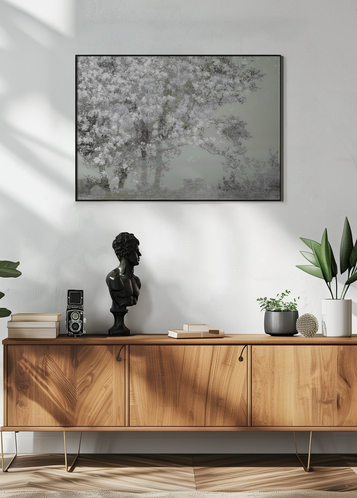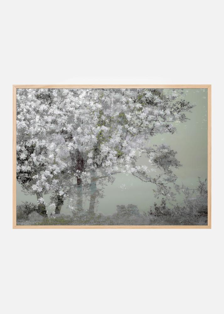 Denna vackra poster fångar ett drömlikt trädlandskap, perfekt för att förvandla vilket rum som helst till en lugn oas. Den konstnärliga kompositionen av blommiga träd mot en dimmig bakgrund skapar ett magiskt intryck som lockar betraktaren att drömma sig bort. Motivets mjuka toner ger en känsla av fridfullhet och förmedlar naturens skönhet. Oavsett om man söker en unik affisch för vardagsrummet eller ett stilrent print till sovrummet, är detta motiv ett utmärkt val.