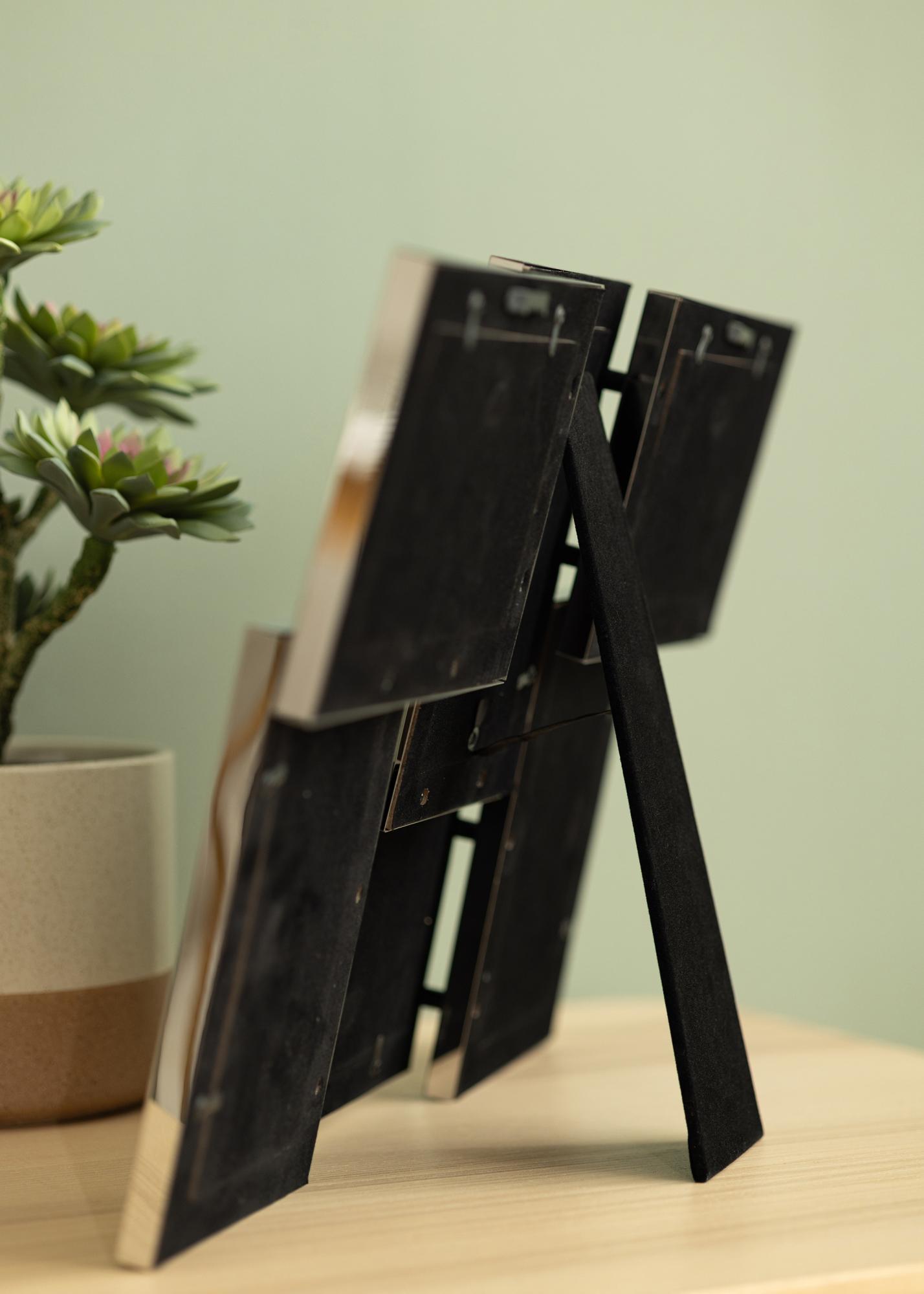 Ramen rymmer tre foton i stående format och tre foton i liggande format. För att montera in bilderna i ramen vrider du på de små metallclipsen på ramens baksida, lossar på bakstycket och placerar in din bild intill glaset. Varje bild har ett eget litet bakstycke för att du enklare ska kunna sätta in eller byta ut en bild i taget.