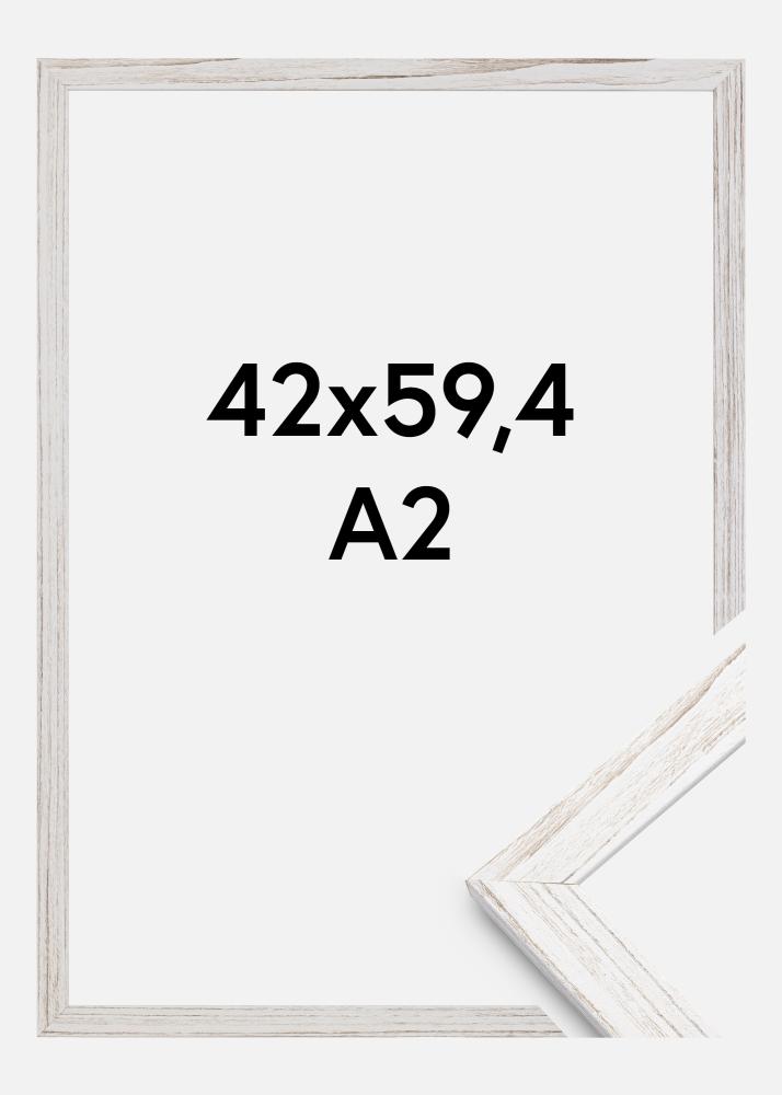 Det här är en ram i vintage design. Ramen går i en vit nyans med brunspräckliga inslag som ger den här ramen en lite mer rustik känsla. Ramlisten mäter 20 mm bredd och 14 mm djup. Ramen är tillverkad i furu och har riktigt glas. Vintage White finns i många olika storlekar som du snyggt kan matcha med varandra. Denna tavelram mäter 42x59,4 cm och passar motiv i A2 storlek.