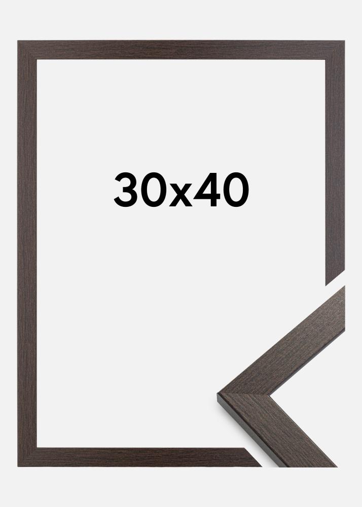Detta är en fin kvalitetsram i mörkbrunt trä som liknar massivt wenge trä. Ramlisten mäter 20 mm bredd och 14 mm djup, dessa dimensioner gör denna ram till en gedigen och stabil fotoram som snyggt ramar in ditt motiv. På ramens baksida sitter väggfästen som gör att du kan hänga upp bilden både stående och liggande. Ramen är tillverkad i furu och har riktigt glas. Stilren Wenge finns i flera olika storlekar varav denna mäter 30x40 cm.