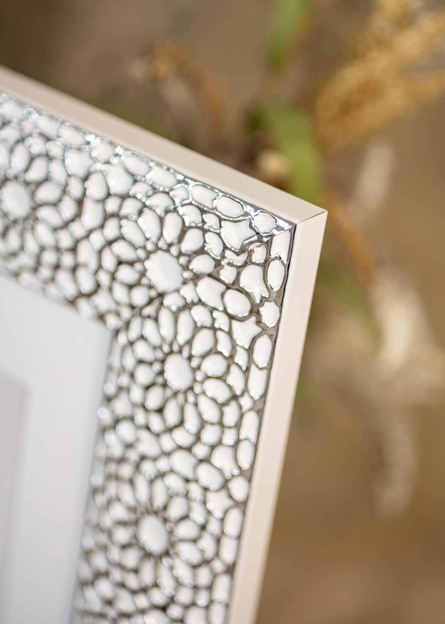 "Stockholm Vit" sammanfattas bäst som lyx och elegans när det är som bäst. Med sin unika lyxiga design i vitt och med ornamenterad silverbeläggning är detta en ram för dig som verkligen vill ha något unikt som verkligen står ut! Perfekt till stora porträttbilder och bröllopsbilder.