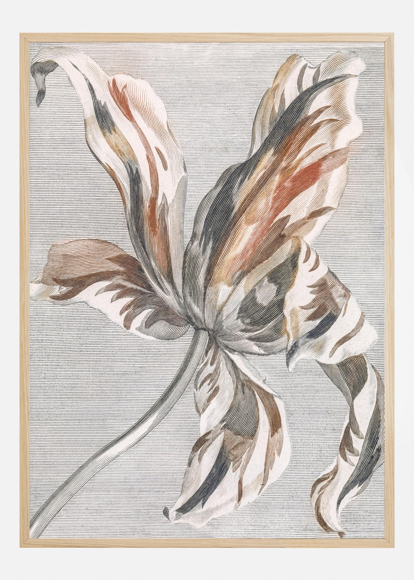 En blommig poster med en djärv randig blomma i rött, vitt och grått. De flytande penseldragen följer kronbladens linjer för att skapa liv i verket. Matcha de starka röda färgerna på väggen där du hänger den här för att få en ännu mer levande effekt.