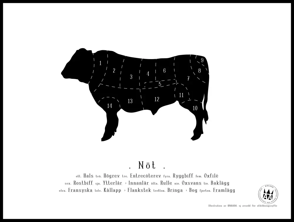 Knaada - Styckningsschema (Nöt) Poster (30x40 cm)